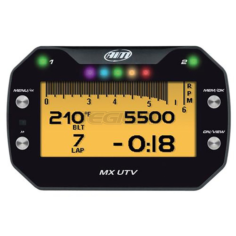 The MX UTV Dash Logger is designed for UTV vehicles. It displays engine ECU data and transmission belt temperature via infrared sensor included in kit.