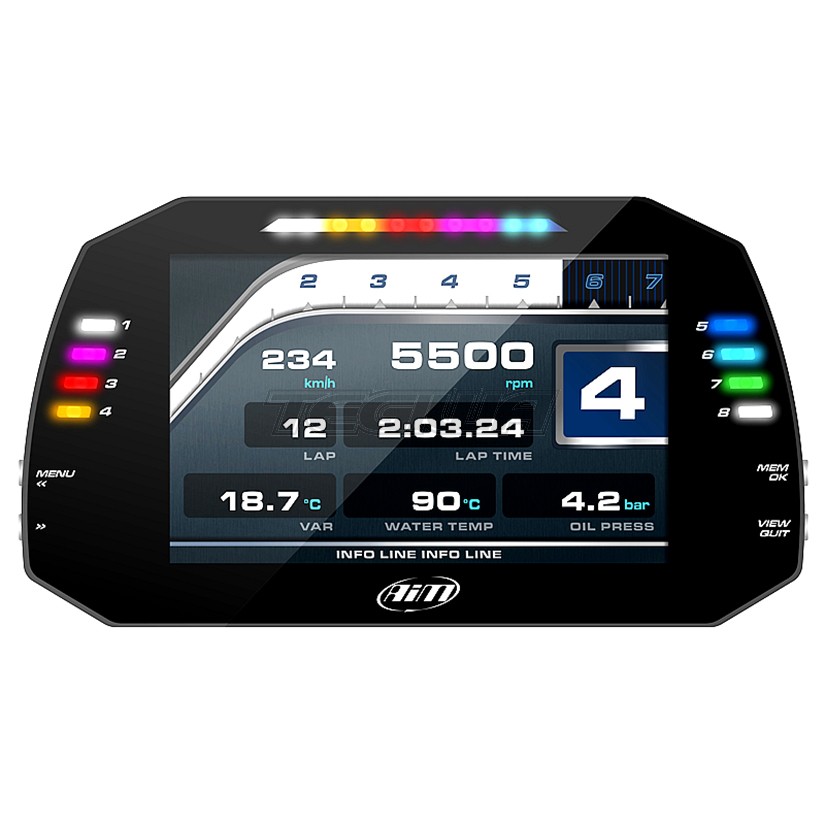 The AiM MXG 1.2 Dash Logger has an extra wide 7" high contrast display which is fully configurable by the user and is suitable for many different motorsports categories. The MXG has been designed to acquire and display data coming from your ECU, the internal accelerometer and gyro, the GPS08 Module analogue/digital inputs and predefined math channels.