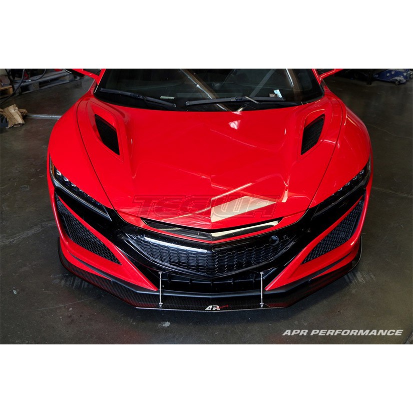 To combat the effects of front end lift, APR Front Wind Splitters are utilized to give extra traction and control in the front of a car. By creating a high pressure area on top of the wind splitter, high pressure air flow is restricted to flow underneath a car. With low pressure below the car, the effect of lift is reduced and a driver can gain from the extra traction and control.