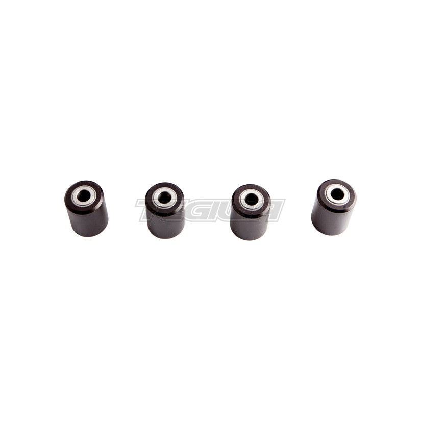 This kit is a must for road race enthusiast looking to eliminate alignment deflection and slop from rubber control arm bushings. Until now, no other manufacturer has produced a solid bushing kit for the S2000 that is protected from dust and debris. The Upper control arm bushings are made out of Steel/Bronze/Aluminum construction that is press fit and notched with Inner O rings on both ends keeping the bushing maintenance free.