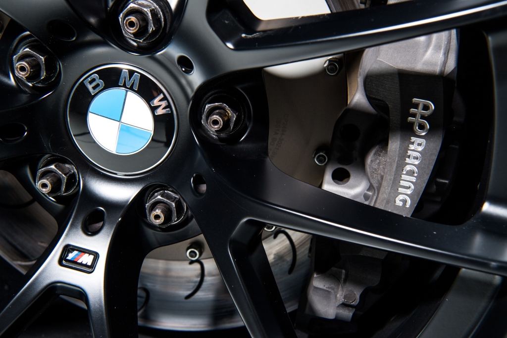 There’s little to no resemblance to the road going M4 when it comes to suspension. Spherical bearings and adjustable arms feature on the front and rear, whilst the front hub assembly is tucked inward to make room for the enormous 18×11 front wheel and its 305mm tires. Ohlins are on damping duties with 3-way adjustable coilovers and remote reservoirs.
