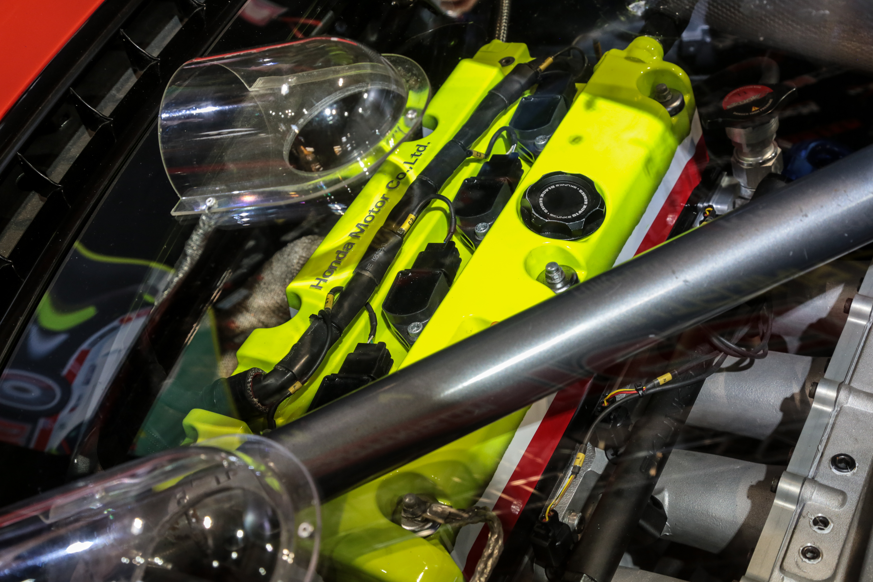 Let’s start with a look around our trade stand. Our NSX unsurprisingly made the trip to Autosport with us and sat pride of place in the corner of the stand. Many of you guys came and saw it and checked out it’s Skunk2 K24 power plant in person, along with its new fluorescent yellow cam cover.
