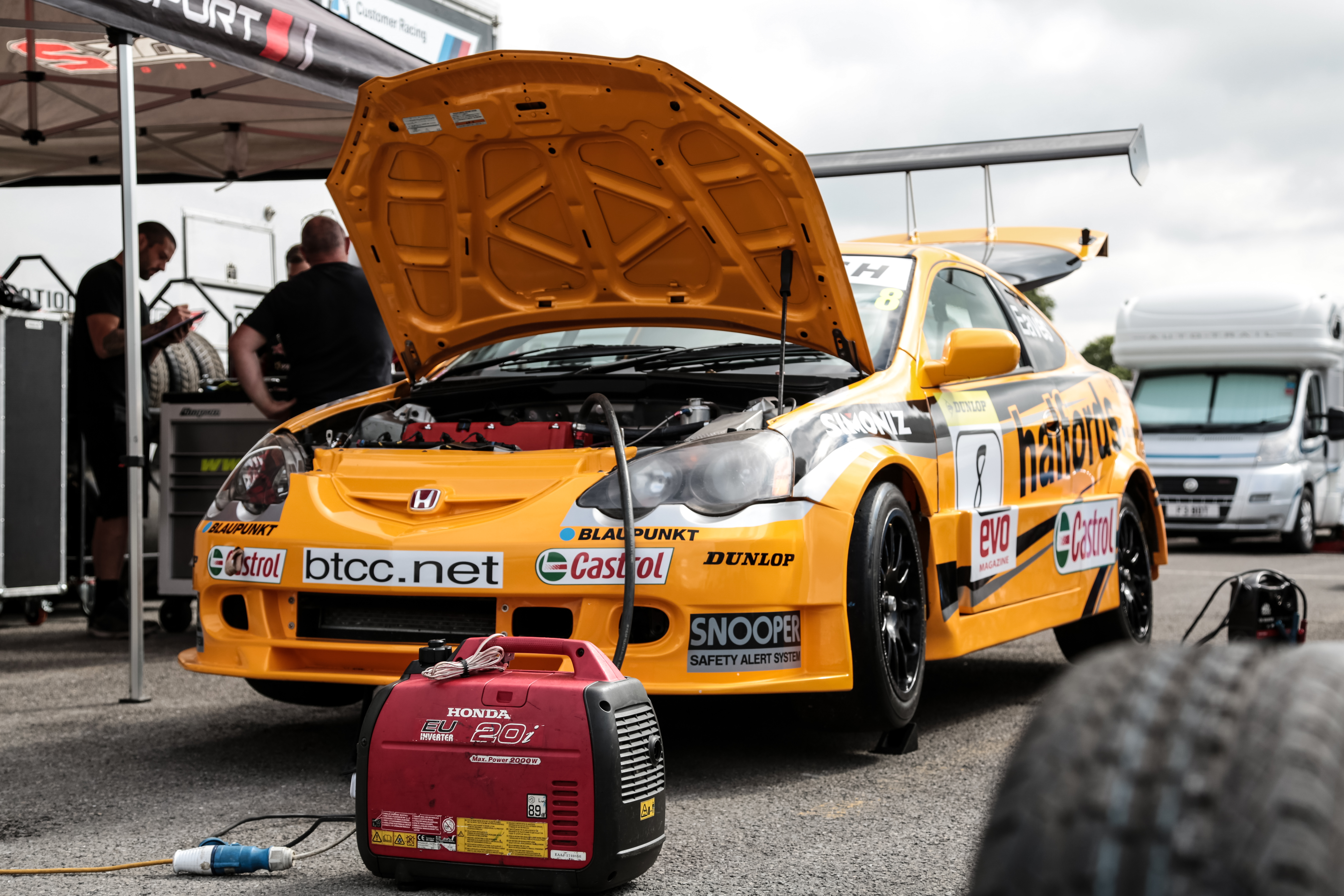 The first challenge of the day was getting the car started. With this DC5 not being your average road going Integra, there’s a little bit more to it than simply turning a key. Firstly, we had to pre-heat the engine for around 30 minutes to get the car warm as the tolerances are so tight (naturally it was only right that we use a Honda generator). With the Neil Brown engine designed to last the length of a BTCC season, 5,000km it’s super important that we follow the correct procedures so that we don’t take anything off it’s precious lifespan.