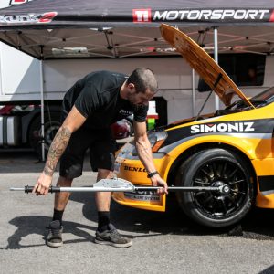 The weather looked touch and go in the morning. We did think we might see some rain making an appearance but fortunately it held off and the day was filled with blazing sunshine which meant we could put the car onto its slick tyres. Check out the size of that torque wrench!