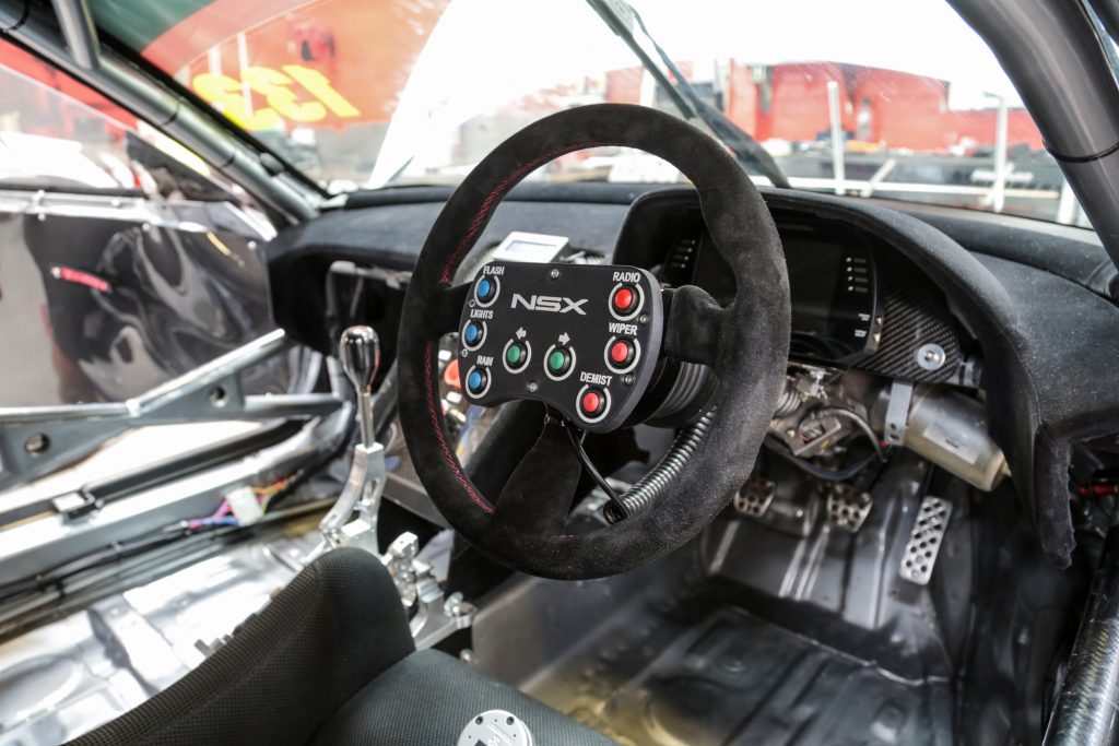 With over 20 years experience in wiring solutions, ranging from high end performance cars to thorough-bred race cars, we could rest assured that the car was in the right set of hands. The NSX also had some new goodies to be installed too, a 3D printed button assembly for the steering wheel courtesy of Upaclick and a Racelogic VBOX Video system so that our drivers can analyse and record their in-car footage and not to mention the carbon fibre switch panel that adorns the centre console.