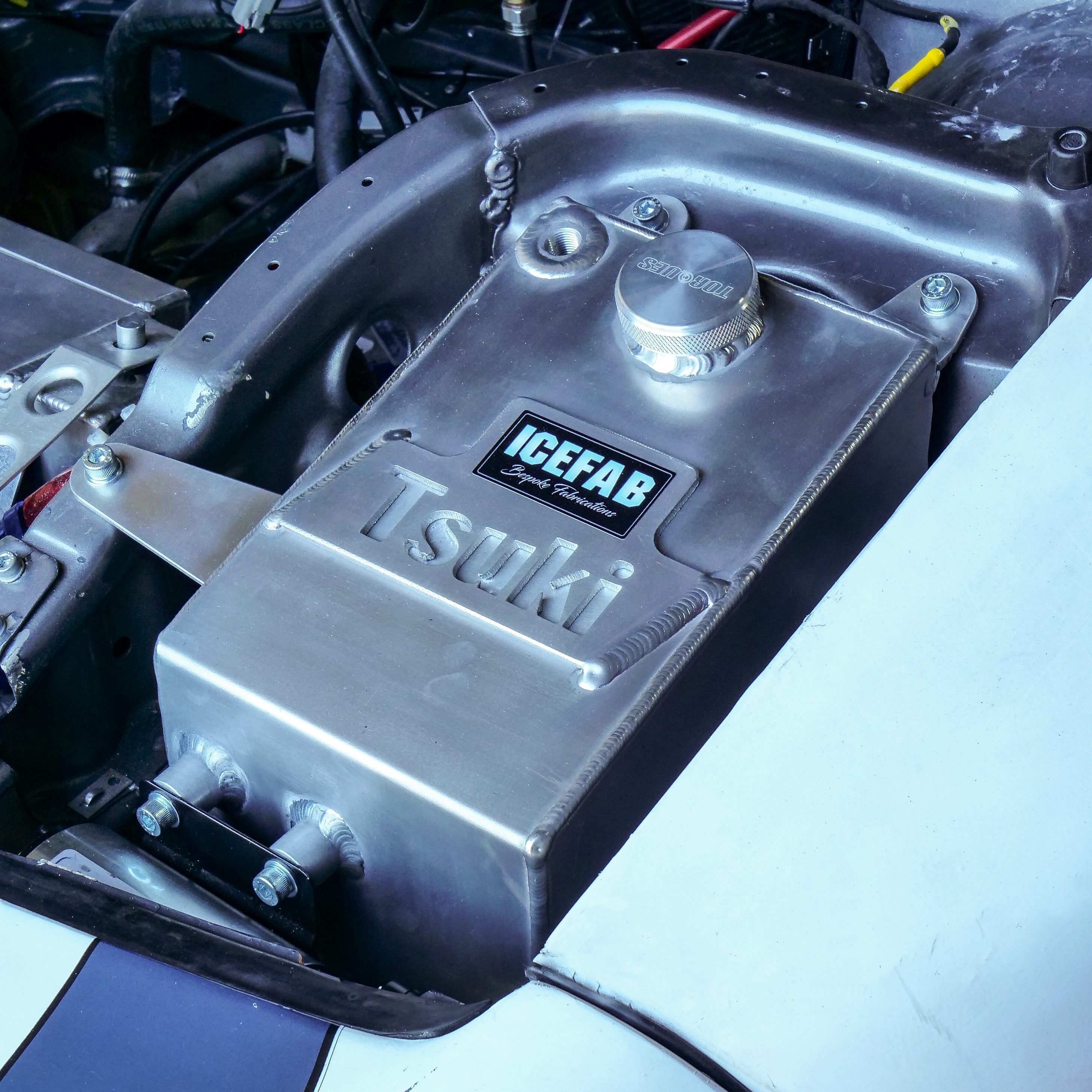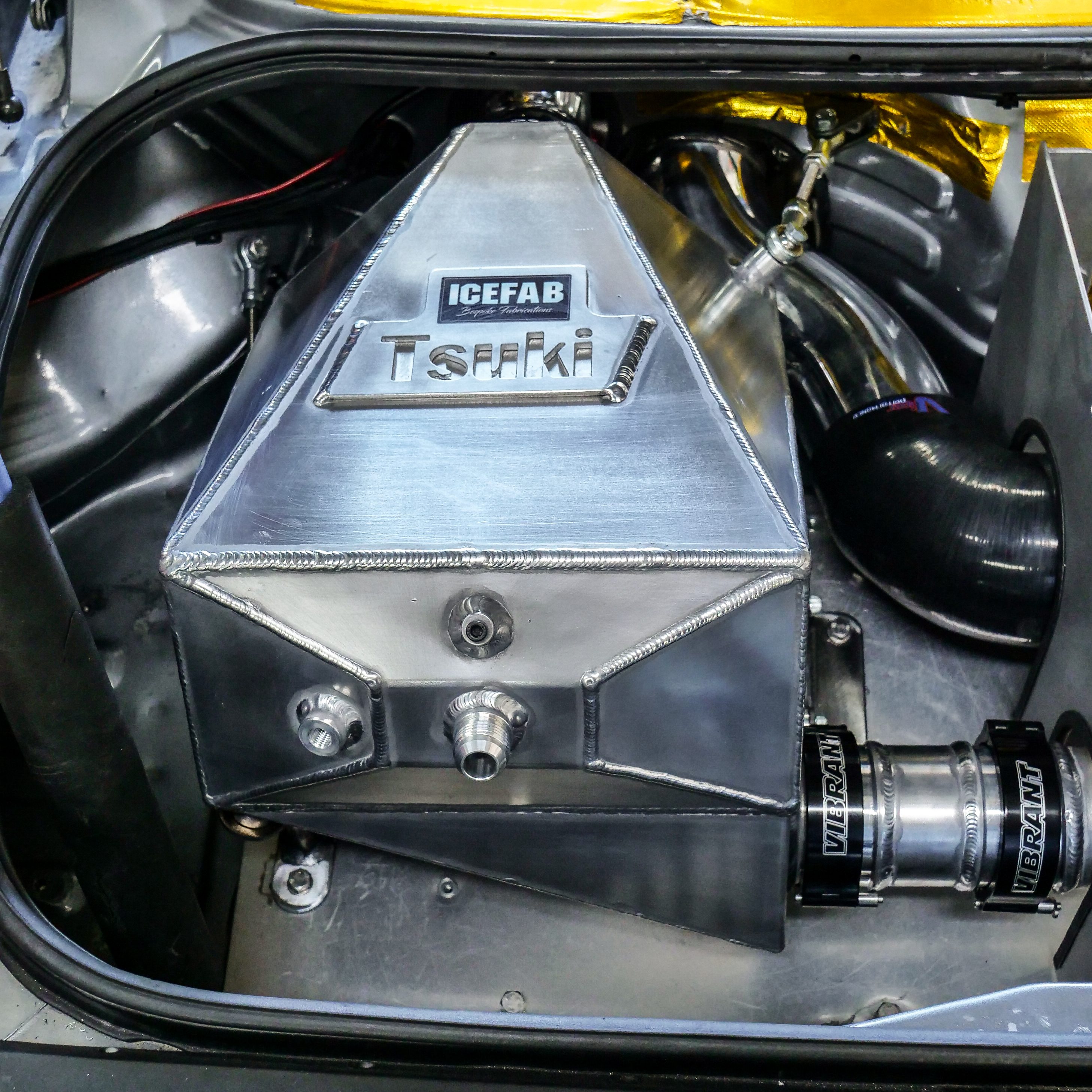 This is probably a world first, but don’t hold us to it, the pop-up headlights have now been replaced with a custom water meth tank and our resident whittler, Andrew Ford, made a custom 1-piece bonnet!