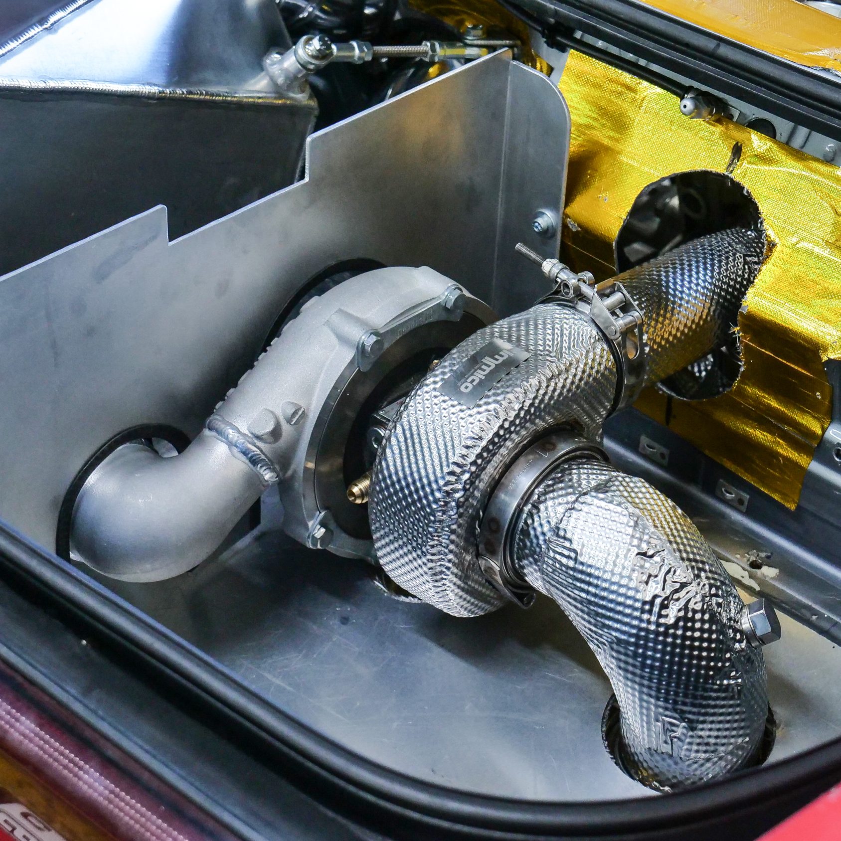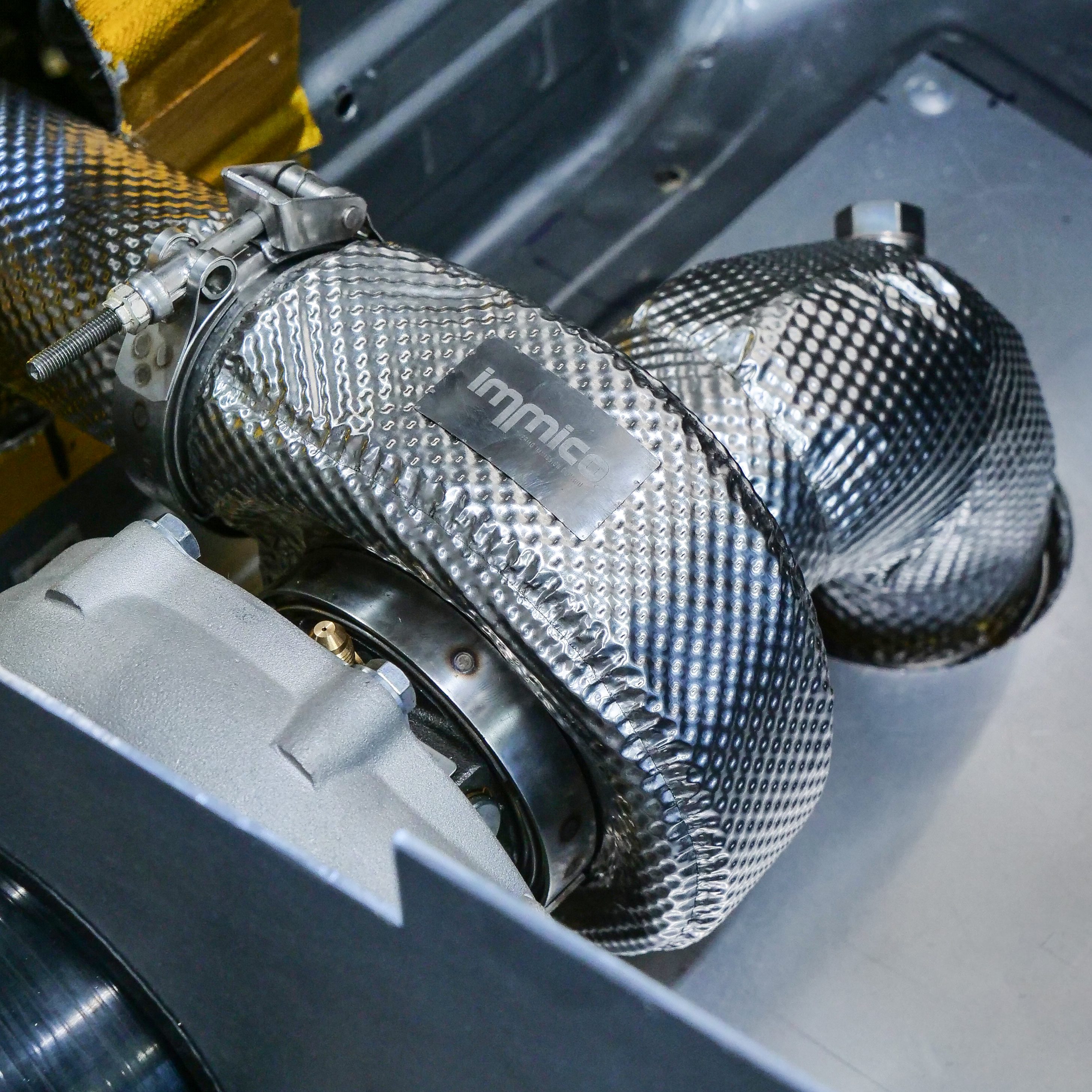 We’ve had many of these new parts including the turbocharger wrapped in Immico’s Kavartherm insulation. Not only does this help to keep temperatures to a minimum but it also helps to prevent hot spots, especially in the boot. On our dyno we have seen temperatures as low as 100 degrees on the outside of the insulation, even when the turbo is well over 400!