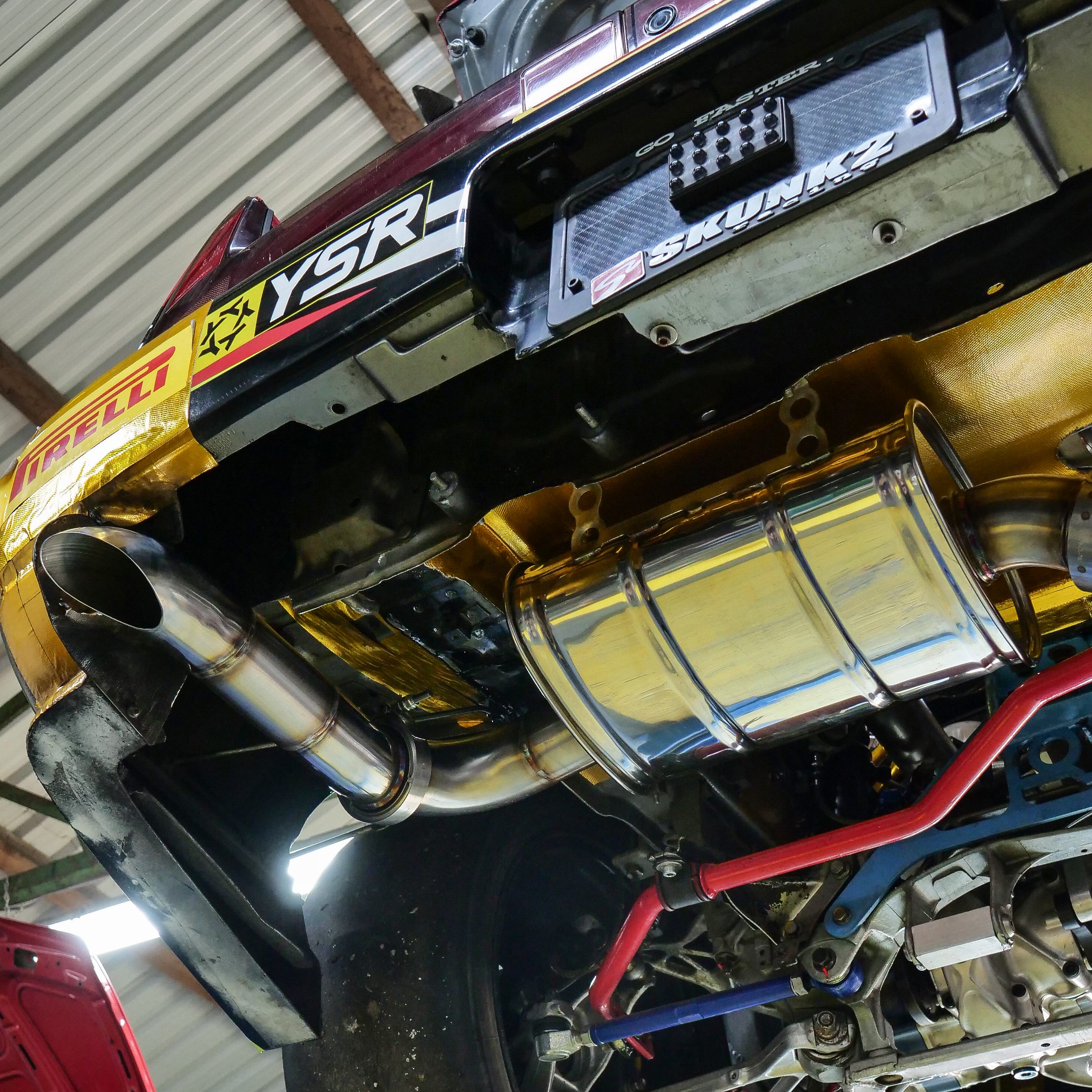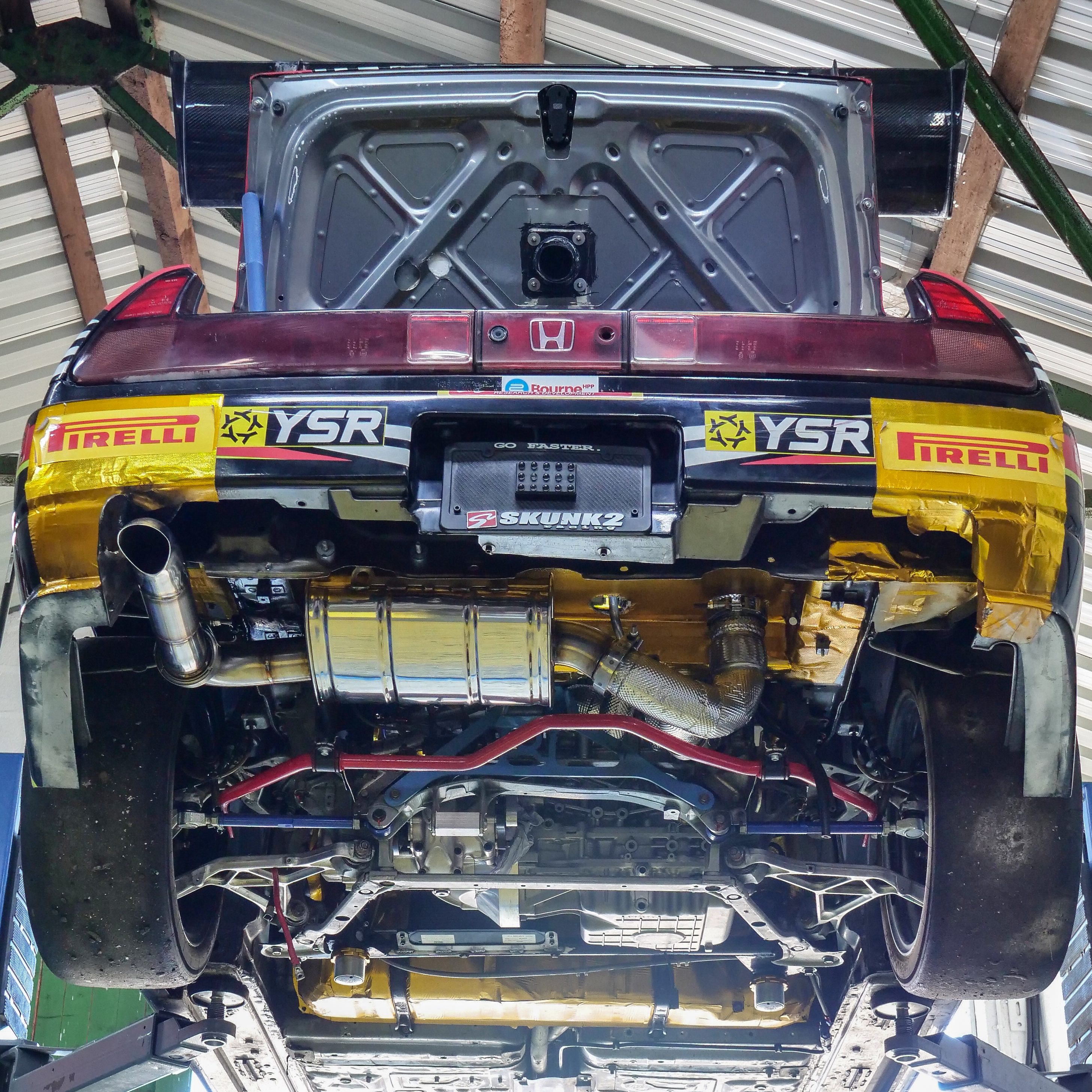 A completely fresh exhaust system has been fabricated underneath the NSX. We’re hoping to see some big flames out the back of that fancy new exhaust tip!