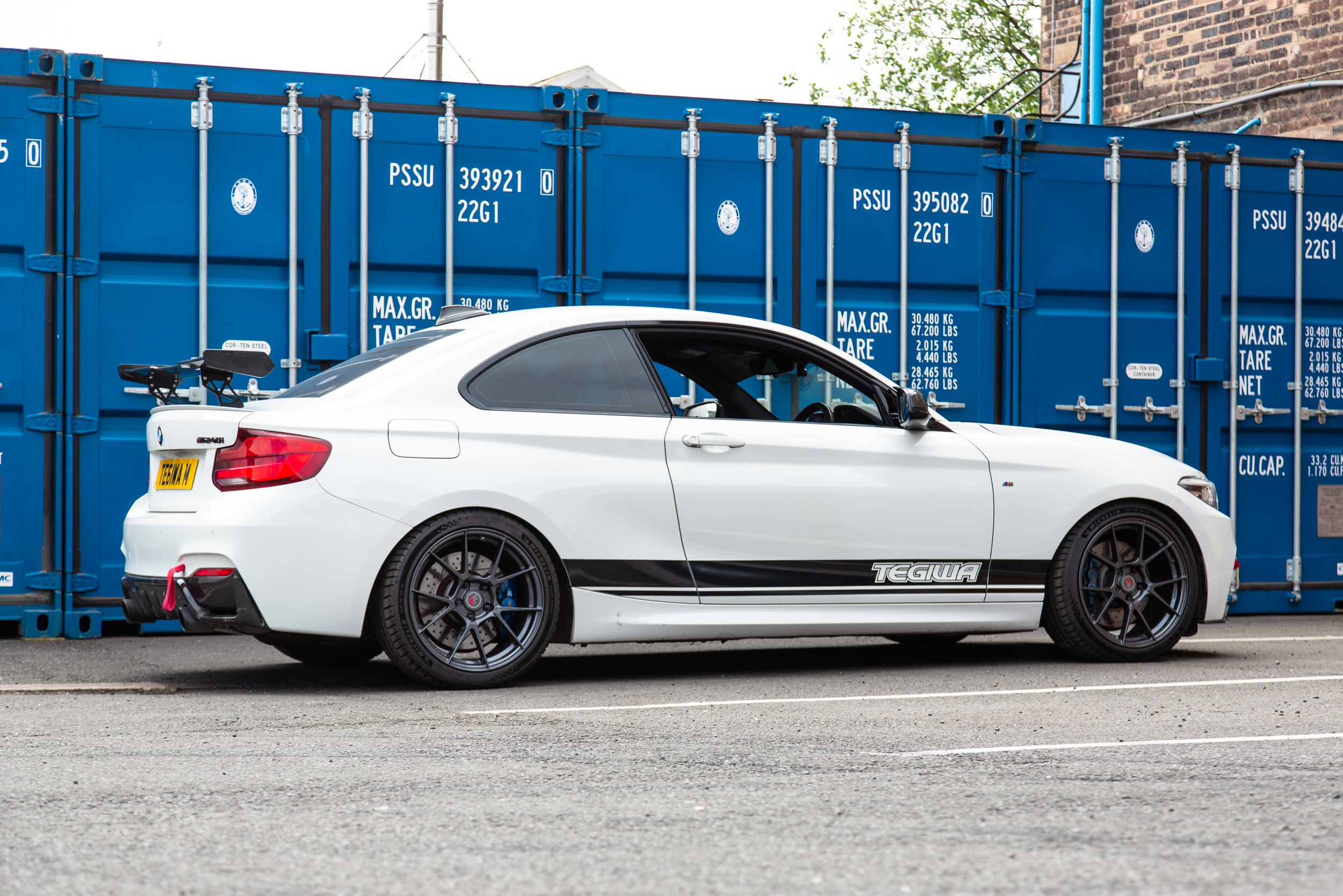 Our alloy wheel of choice was the 2Forge ZF6 with a 18″ x 9J square setup. These weigh in at 9kg each. We’re using a custom offset so they fill the arch as flush as they can be with an ET42 on the rear and ET30 on the front.