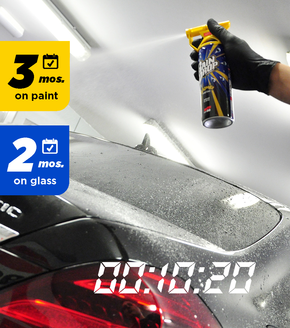 It provides a strong hydrophobic effect, high gloss, protection, and covers up minor scratches. The high pressure nozzle allows for a quick and convenient application, even on large surfaces. Rain Drop facilitates and speeds up the drying process, instantly giving the car a shiny look.