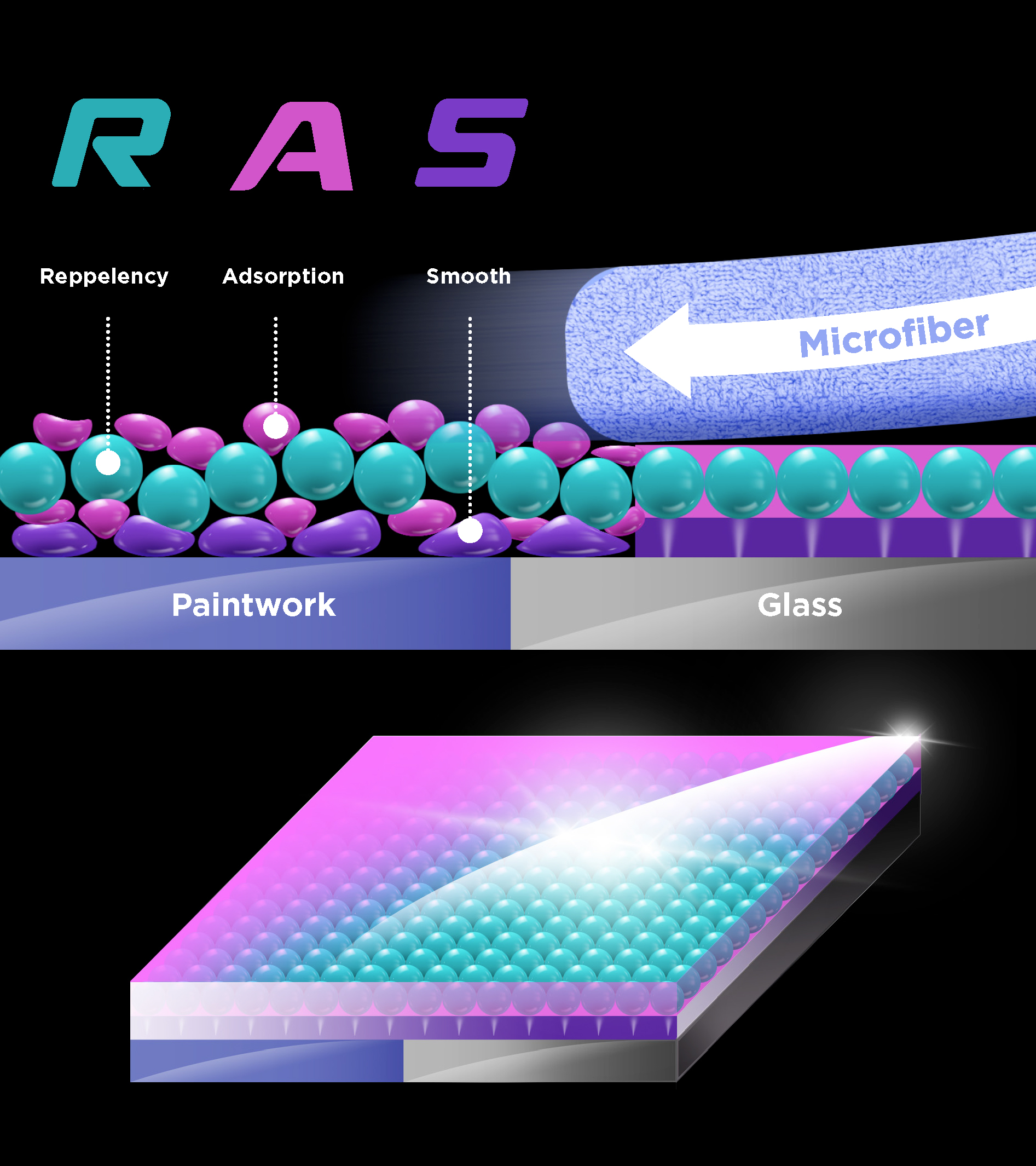 It can be used as a stand-alone protective layer, but also as a booster of previously applied coatings, waxes or invisible wipers, strengthening their hydrophobicity and protection.