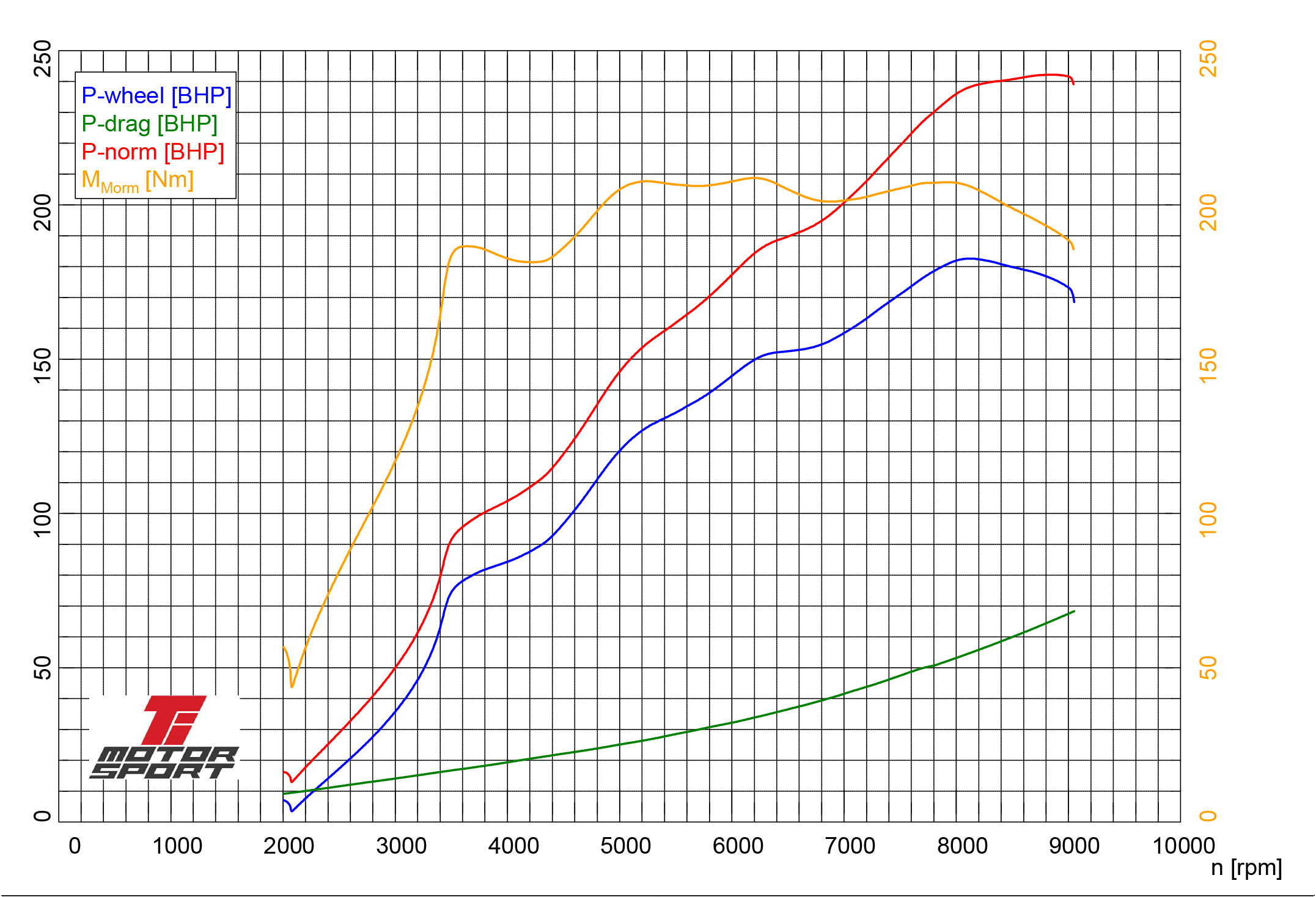Initially i was pretty sure the new Ultra intake from Skunk2 would take the crown, i’ve made great power tuning on these before but having seen what the RRC just did i was sceptical to say the least. Fitting it was actually fairly tricky, getting the lower left mounting bolt in is the main issue i struggled with. We ran it “as is, out the box” as we did with the Pro series intake and the strange dip that was present with the Pro series was back, just a little higher in rev range this time at around 6250rpm. This 10nm dip was only present on the Skunk2 intakes in this test and i couldn’t tune them out, i tried.. lots. Now keeping my foot pinned it soon redeemed itself as it soon pulled gains on the RRC above around 8300rpm and went on to peak at 257hp – 257hp!