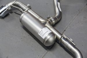 The stock system consists of a catalytic converter (located just after the turbo), a GPF (Gasoline Particulate Filter), GPF-Back system (small, resonated centre section with a cylindrical back box). Weighing in at 11.8kg, the stock exhaust is actually one of the lightest systems we looked at, however, this is probably down to its 2.5” diameter, the smallest here and less than ideal if you’re looking to tune the vehicle in future.