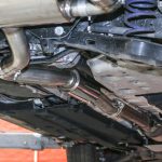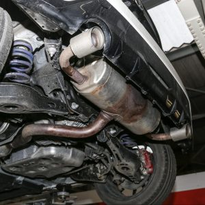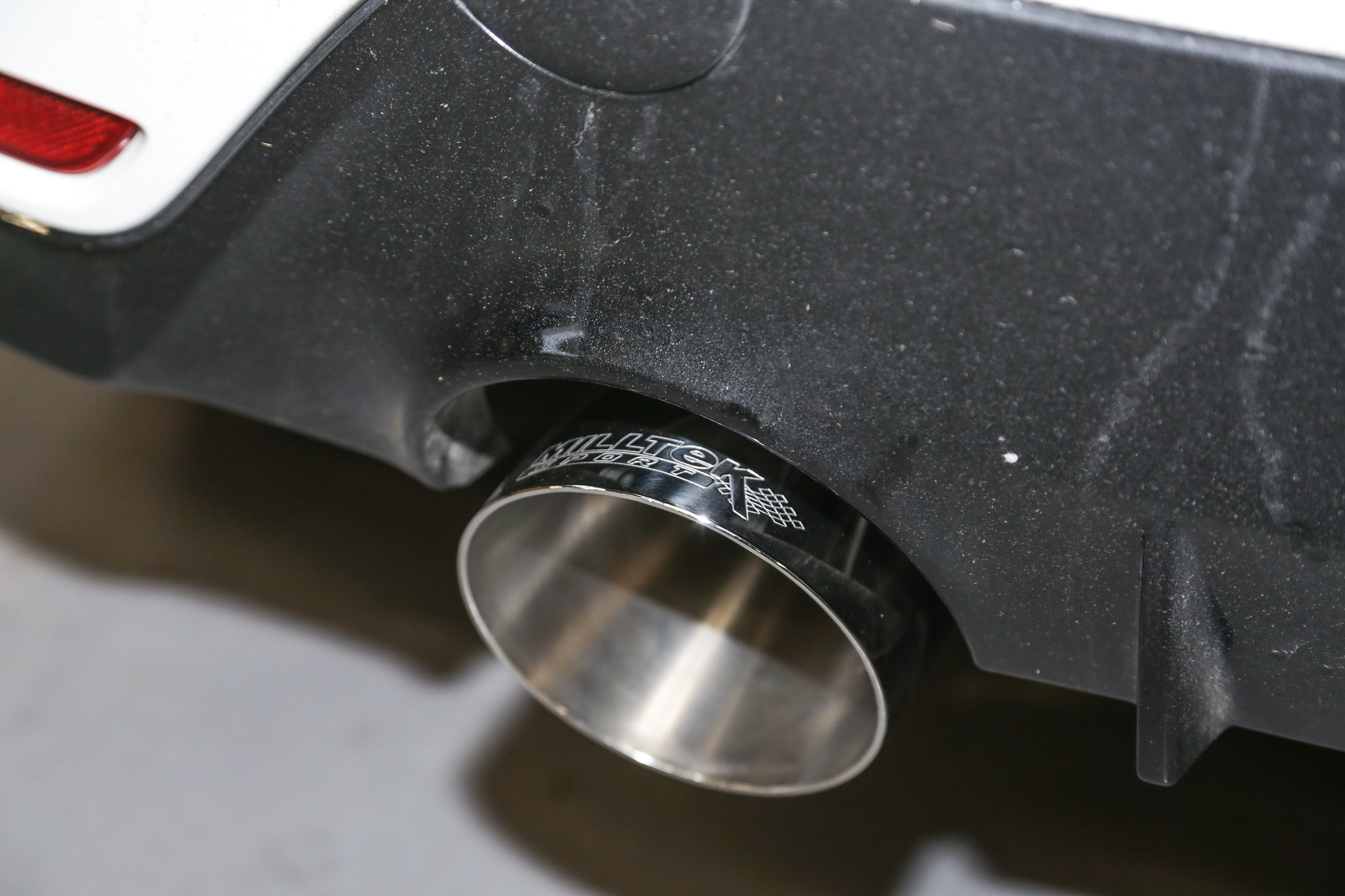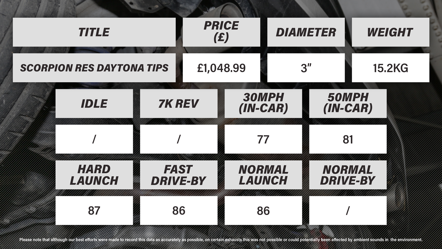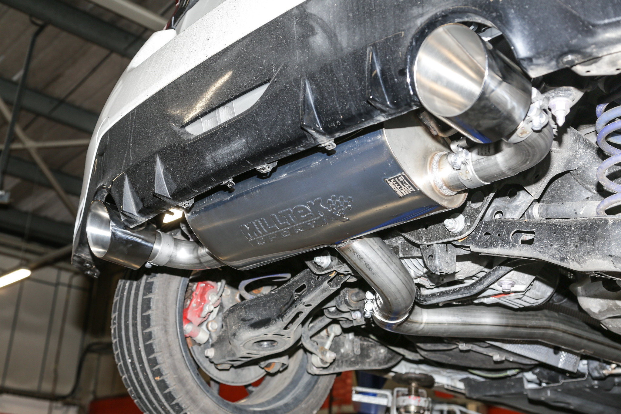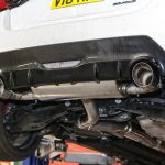 The Scorpion exhaust that we tested is the cheapest resonated system in our test, available for £1048.99. This is a slip-fit system so there’s plenty of room for adjustment, you’ll also get a new gasket, new bolts, and clamps in the box too. Our first impressions of this exhaust were that it had noticeably larger pipework, of course this is down to the 3” diameter. The tips fill out the rear diffuser nicely which is a massive improvement over the stock system.