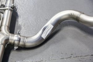 The Martelius was the first system that we tested that features flanged joints and a 2-piece centre section. The exhaust tips were also flanged too, which means no messing around trying to get the tips to line up perfectly. In terms of hardware supplied in the box, we only got the clamps needed to put the exhaust together, there isn’t a gasket or new bolts to mate up with the GPF which is something that’s worth noting if you opt for this exhaust.