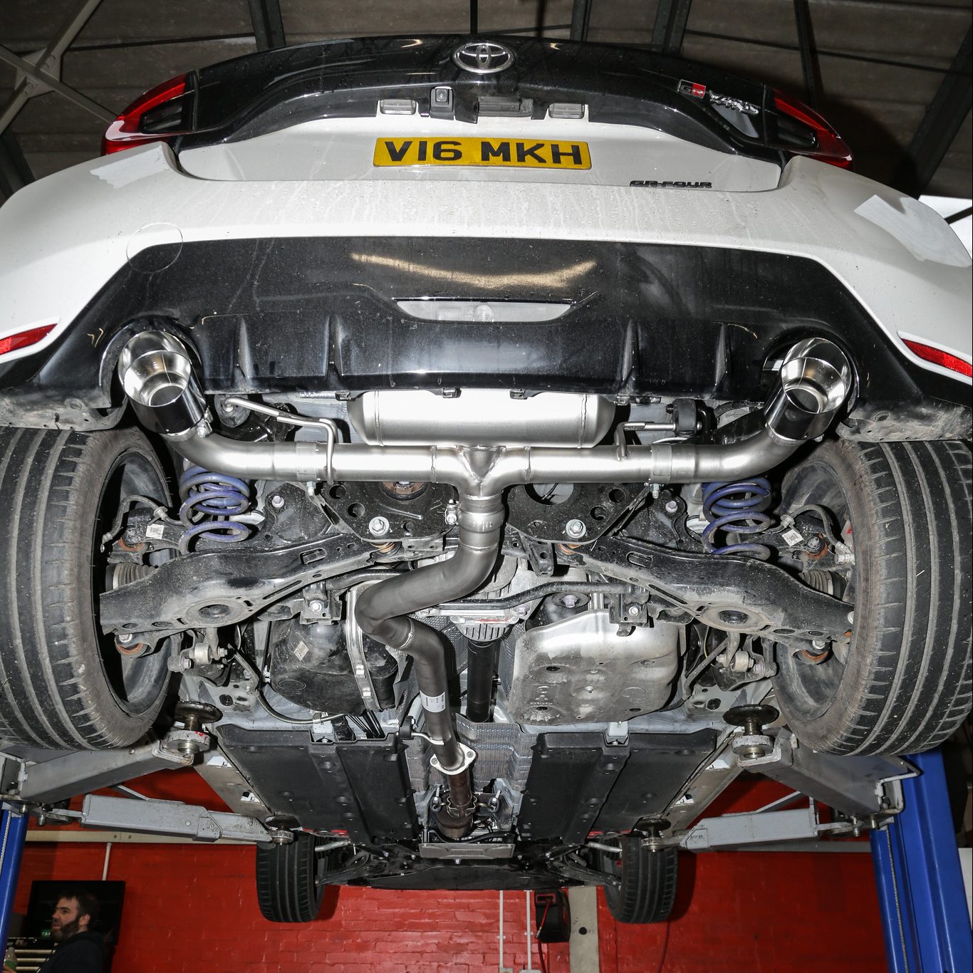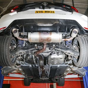 The Milltek was certainly one of the standout performers for us, especially with this system being the cheapest in our test. The system provided a lovely tone and the mandrel bent slip-on fittings from the back box to the tips are certainly going to help flow over the Scorpion’s pie-cut bends. Another plus point for Milltek, is that they have the broadest catalogue when it comes to the GR Yaris exhaust. With everything from decats, to GPF deletes its awesome that you can build your very own 3-piece exhaust system exactly how you want it.
