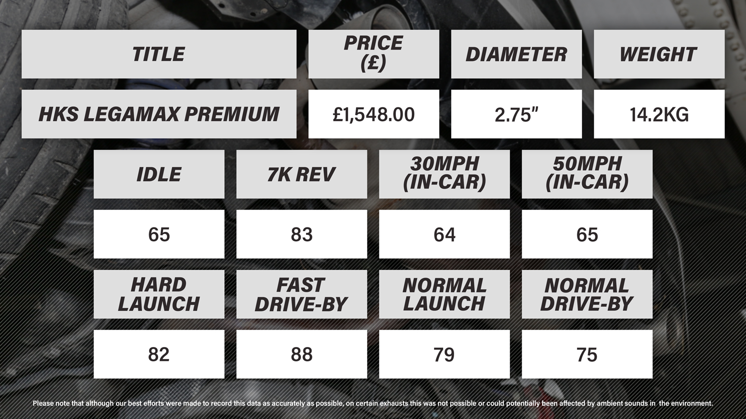 The first of the two HKS systems on our test was the Legamax Premium which is also the cheapest of the two. The build quality of this exhaust was fantastic and featured our favourite tips out of the bunch too with a neat ION coating and HKS branding on the side. It was only slightly louder than the Fujitsubo but it was more obvious that this was an aftermarket exhaust.
