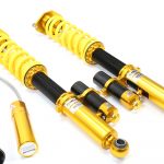 Pillow ball mounts and adjustable camber plates are included for front and rear on some kits to increase steering response, while aluminium upper mounts with hardened rubber bushings are used on some applications. This suspension system is ideal for daily driving and occasional track use and is the best all-rounder.