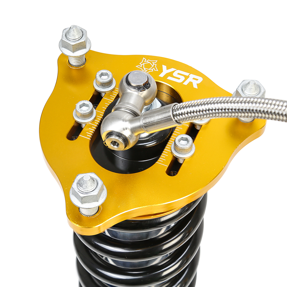 One of the strengths of YSR coilovers lies in their extensive adjustability features, with all their coilovers having 33-way damping adjustment settings. Depending on the specific model, YSR coilovers offer adjustable ride height, damping force (bump) and rebound settings (including high and low speed compression). Advanced adjustability allows you to fine-tune your suspension to suit your driving preferences and road conditions.