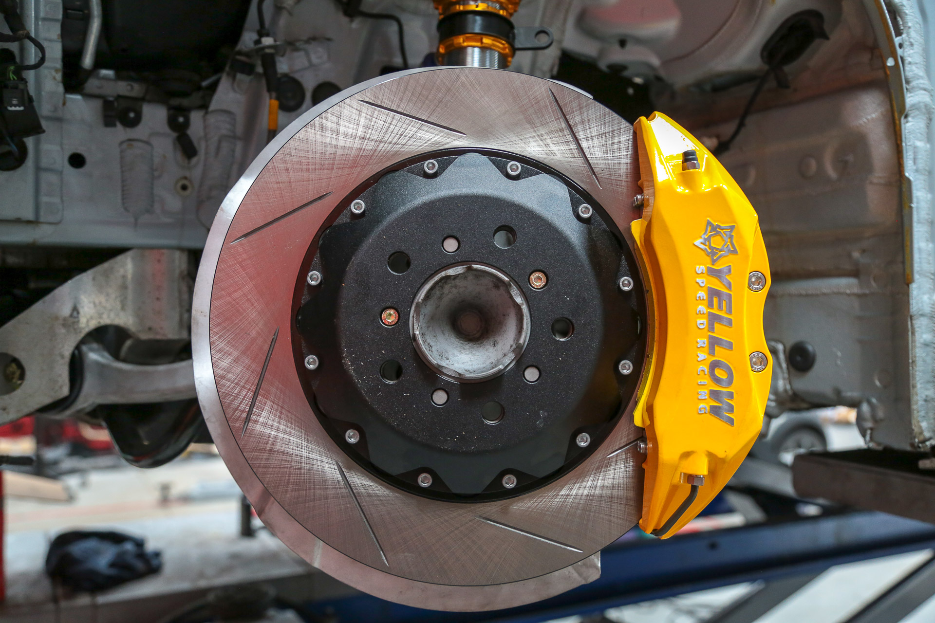With the front end almost entirely prepped this served as a great time to test fit the Yellow Speed Racing big brake kit.