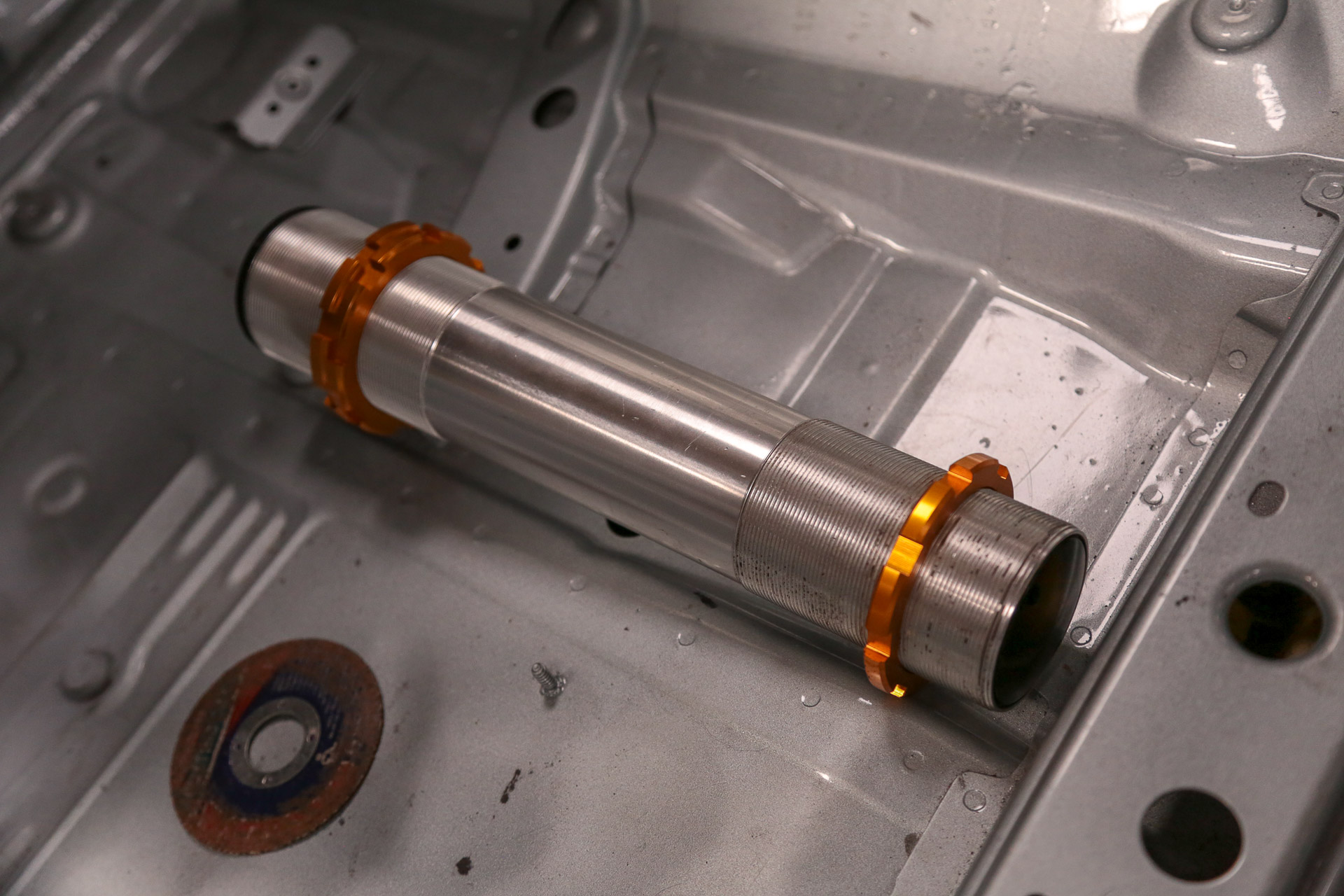 Thankfully Dave’s fabricating experience is giving us an air-jack system that not only works well, but also has the dimes to make it look as good as it performs.