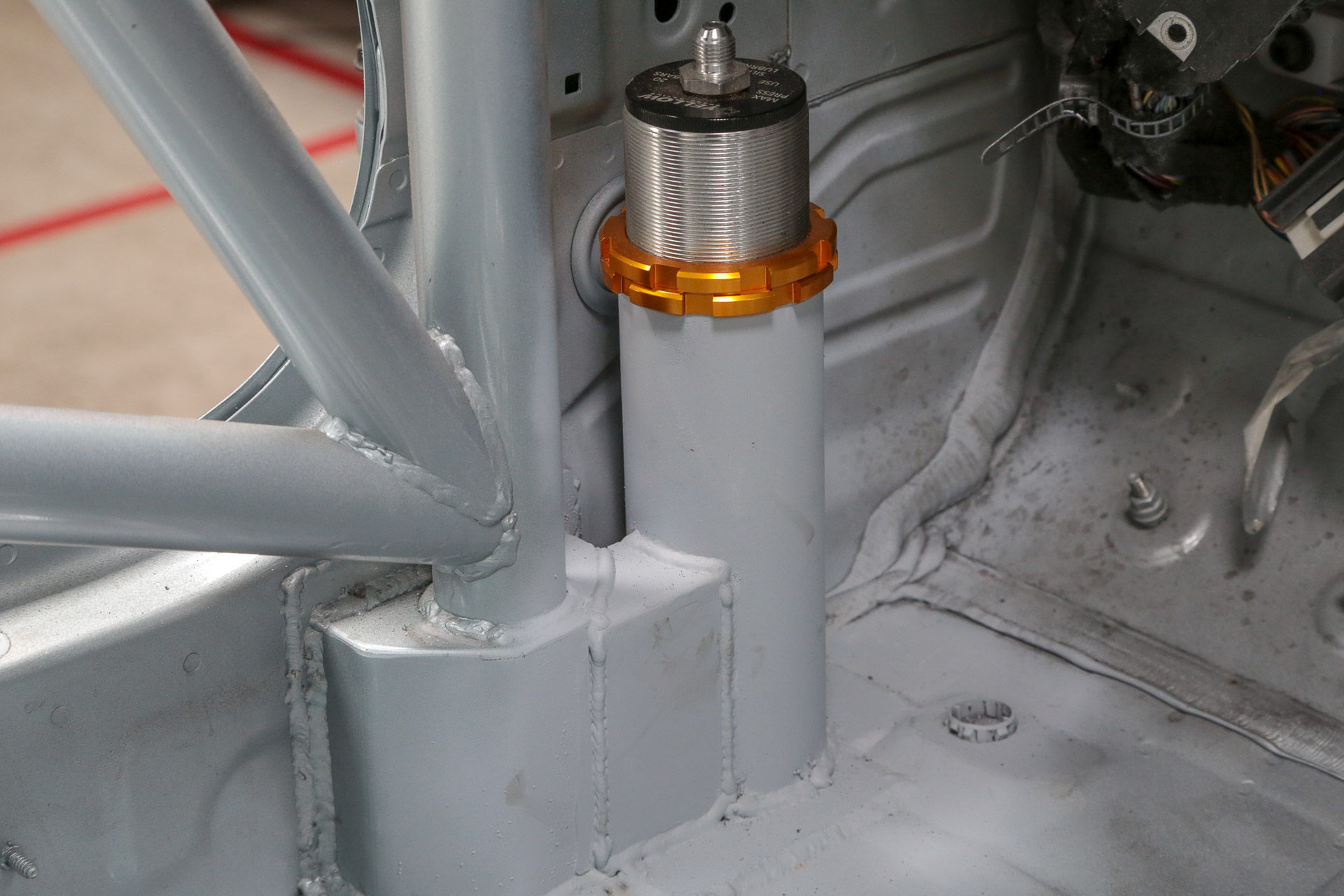 The universal part in this case is Yellow Speed Racing’s own air-jacks, in short the purpose of an air-jack system is to eliminate the need for trolley jacks to get the car up in the air. Using compressed air the system is charged, upon release the jacks hammer the ground, elevating the car and enabling it to be worked on. This could save precious seconds in the pits, saving the crew from faffing around with the conventional style jacks.