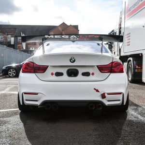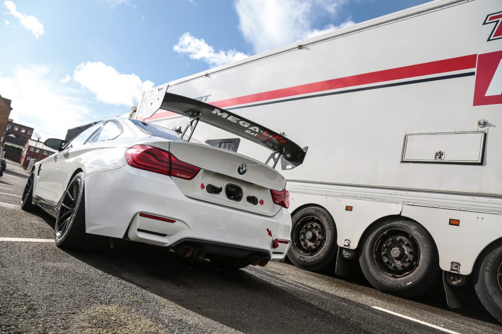 We then stripped the decals off the car to reveal the M4 in its natural state, it’s not very often you seen a full-blown race car naked and it looks damn good. We’re busy working on a new livery for it ready for the British GT, so keep your eyes peeled for that.