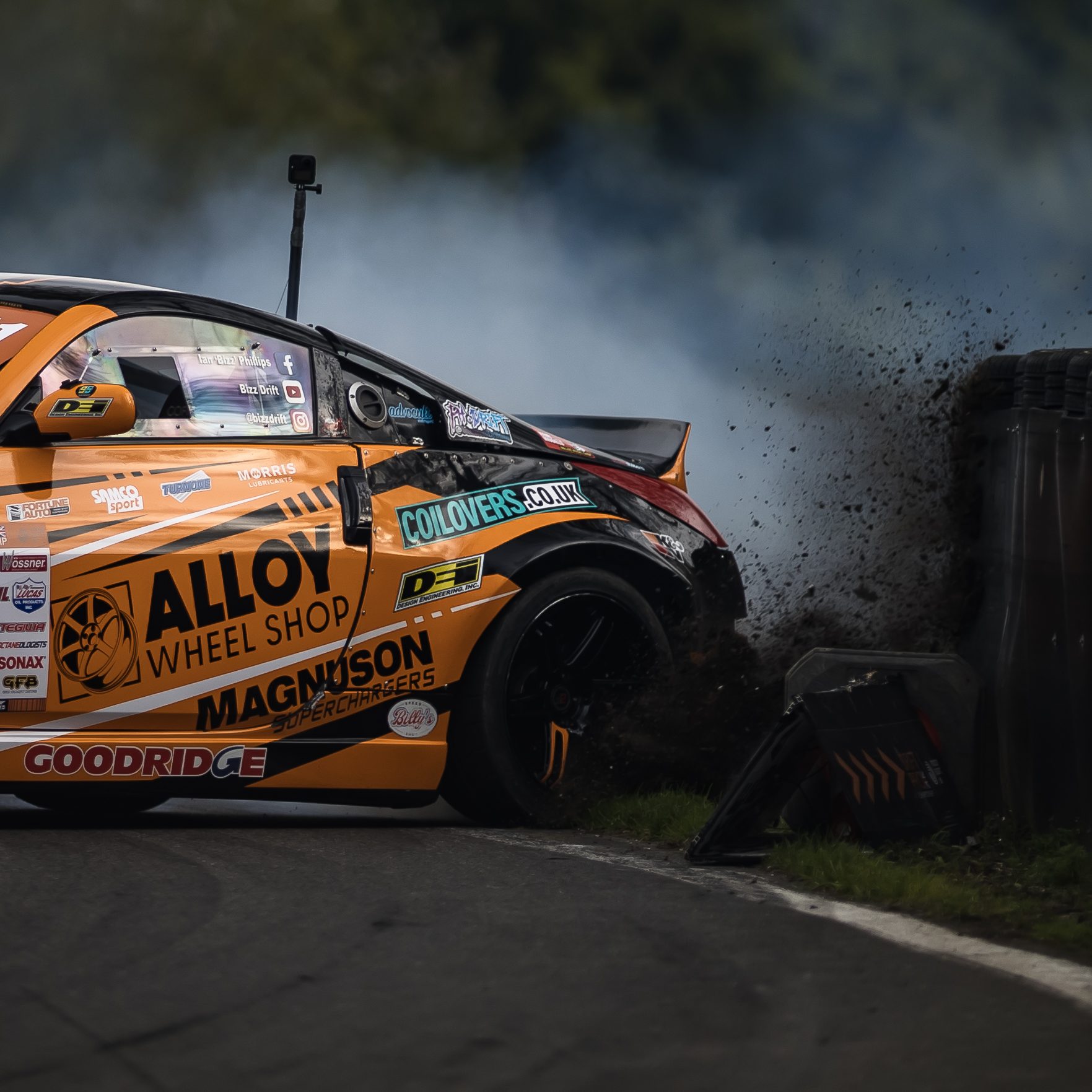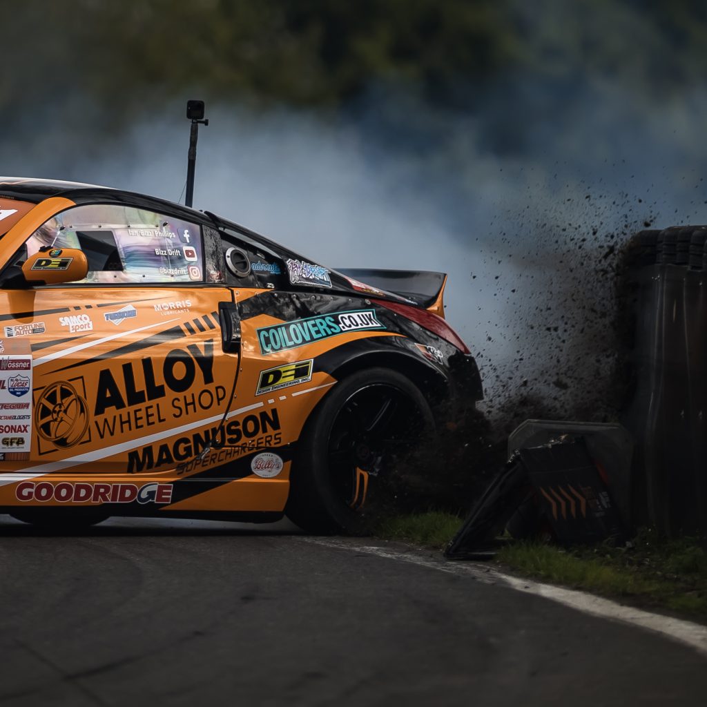 Sunday morning was Round 1 of the championship. It had rained through the night and the Drift Hyper Paddock was on the grass area so it was more like Glastonbury at that time. My team had pulled the car out of the gazebo and got her cleaned ready for practice in a couple of hours. I hopped in to start the warm up and straight away we noticed a misfire. Other cars started to pull into the line as we continued to race and find the source of the problem, checking spark plugs, coil packs, etc.  Unfortunately, we didn’t find the source of the problem prior to practice starting so everyone went out and we remained in the pits, working on the car. After plenty of troubleshooting we found that cylinder 2 wasn’t getting any fuel and eventually found this to be a wiring fault. A quick fix later we fired the LSZ back up and it appeared better so we were ready.