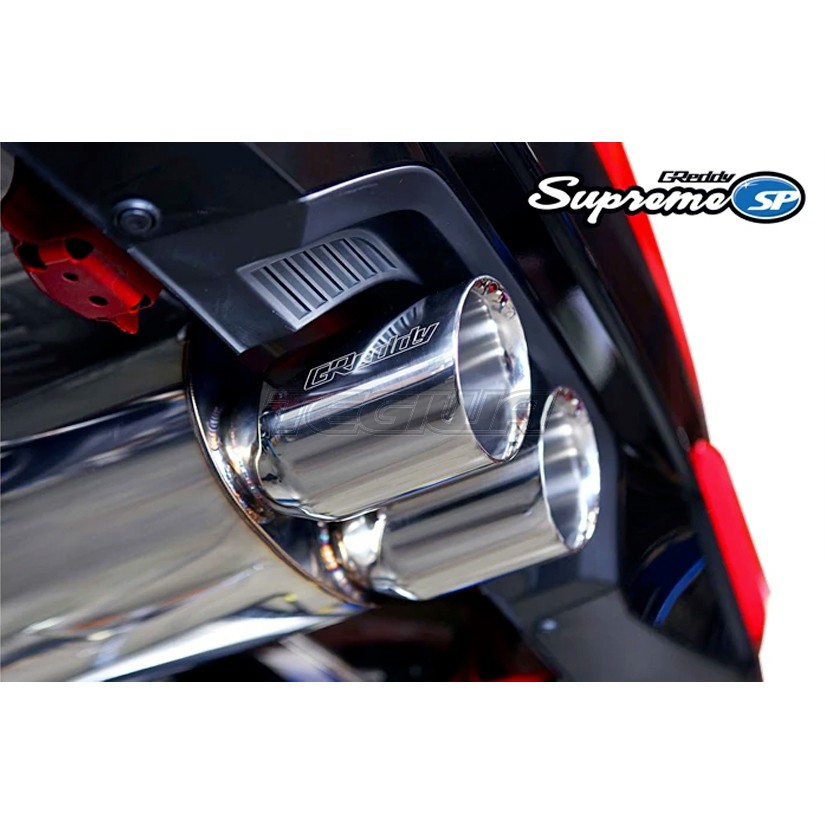 The Supreme SP cat-back exhaust, for the turbocharged 10th generation Honda Civic Sport hatchback, improves the performance, sound quality and styling, by applying our signature SP (Street Performance) ideals into the design. The system not only incorporates large 76mm (3”) piping, but smoothes out and simplifies the heavier, factory, two muffler layout with a free flowing, compact single entry, dual outlet, oval SP muffler. This allows the turbocharged L15 engine to be more efficient for added performance, without having drone or being loud. The Supreme SP sound level was carefully tuned not to require any additional resonators; this also helps lighten up the system. The polished stainless-steel center-exit exhaust is finished off with stylish dual, double-wall, slant cut GReddy tips, to enhance the Civic’s sporty rear diffuser. Like all GReddy Supreme SP systems, the fully hand-welded 304 Stainless-Steel exhausts carry a Limited Lifetime Warranty