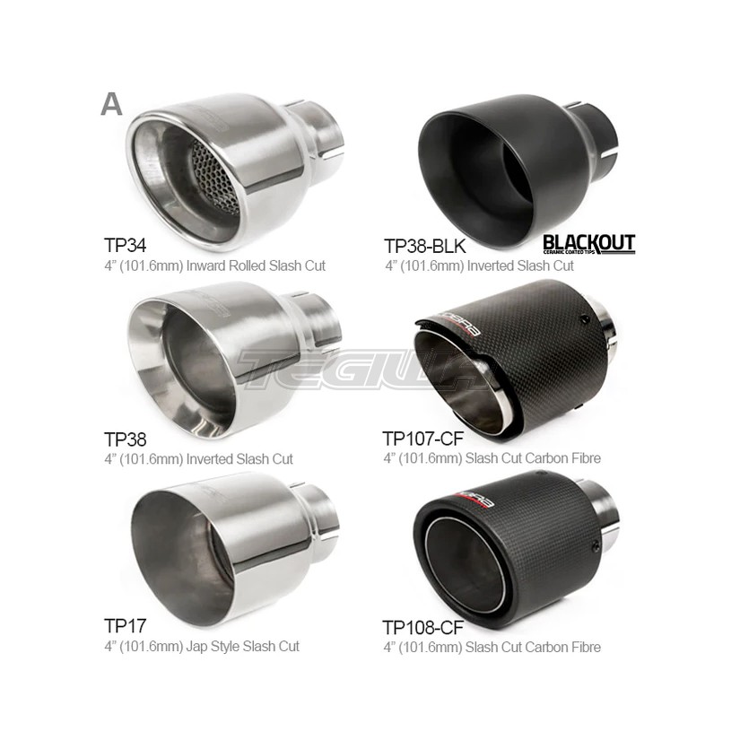 This exhaust has a choice of 4" (101.6mm) tailpipe options including a choice of carbon fibre tip options.