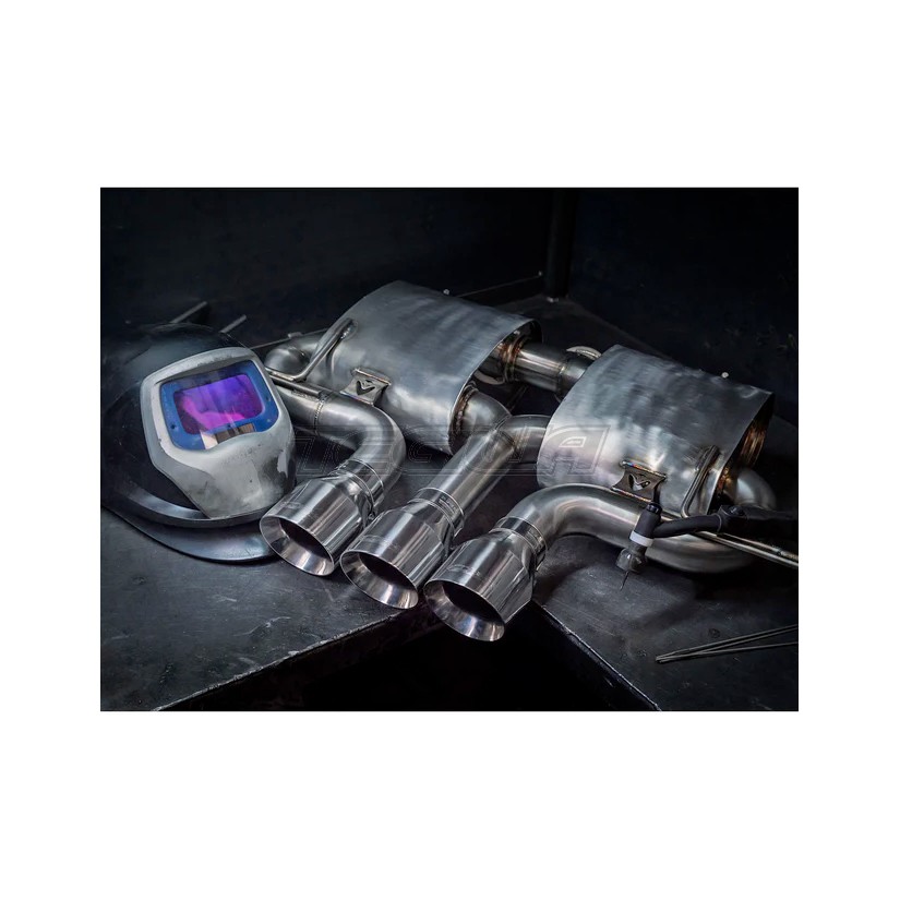 This Honda Civic Type R (FK8) performance exhaust is made in 3"/76.2mm pipework and fit from the catalytic converter section backwards (Cat-back), these parts replace the over axle, centre and rear sections.