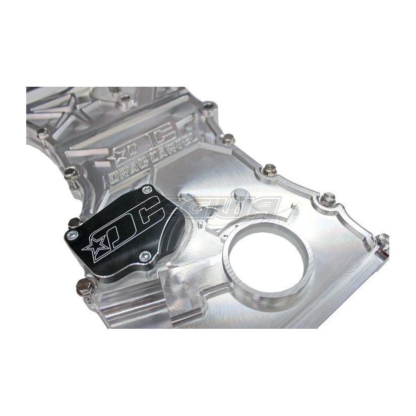 DC K-Series Timing Chain Covers are available for K20 and K24 applications in Machined Aluminum or Black-Anodized. Feature DC logo as a part of the design. Machined using high precision CNC equipment for an OEM fit and finish and an O-Ring Sealing Surface .