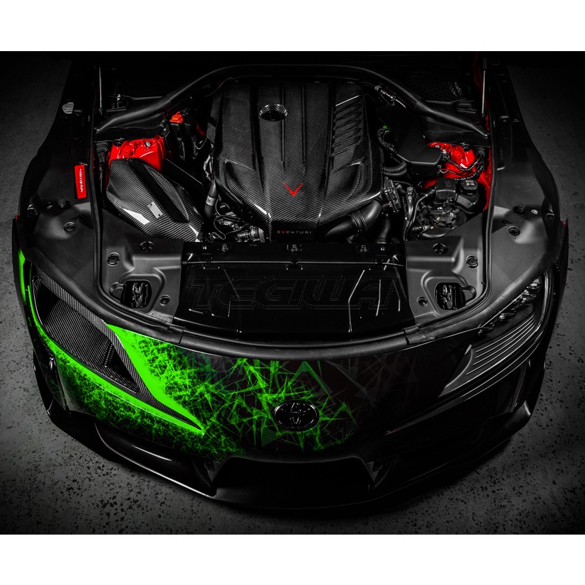 The headlamp duct channels air directly into the intake area of the engine bay. By incorporating 2 separate flow channels, incoming air is smoothly directed into the OEM intake duct and also onto the hot side of the engine. The prepreg carbon construction provides rigidity and the stainless steel bracket work ensures it is locked into position even at speeds over 190mph. Ideal when used in conjunction with our Supra intake system which has a removeable panel to allow for the extra airflow. It is also the perfect solution for cars using big turbo conversions which don't have the space for a sealed airbox design. By feeding the turbo with cold air, peak boost can be achieved sooner as the spool up is using colder more dense air and performance is maintained by reducing heat soak.