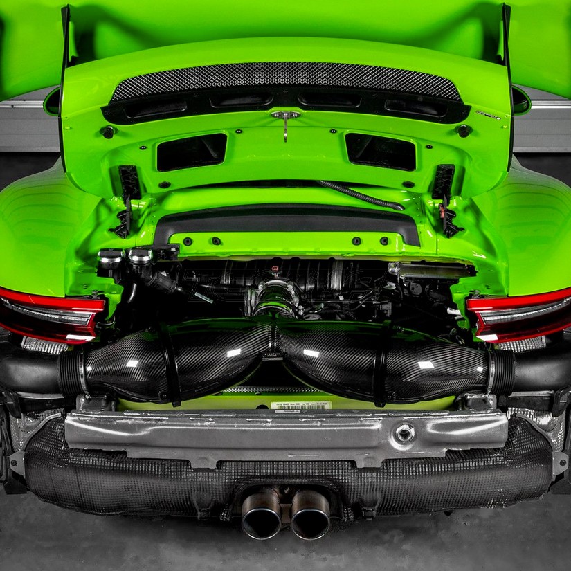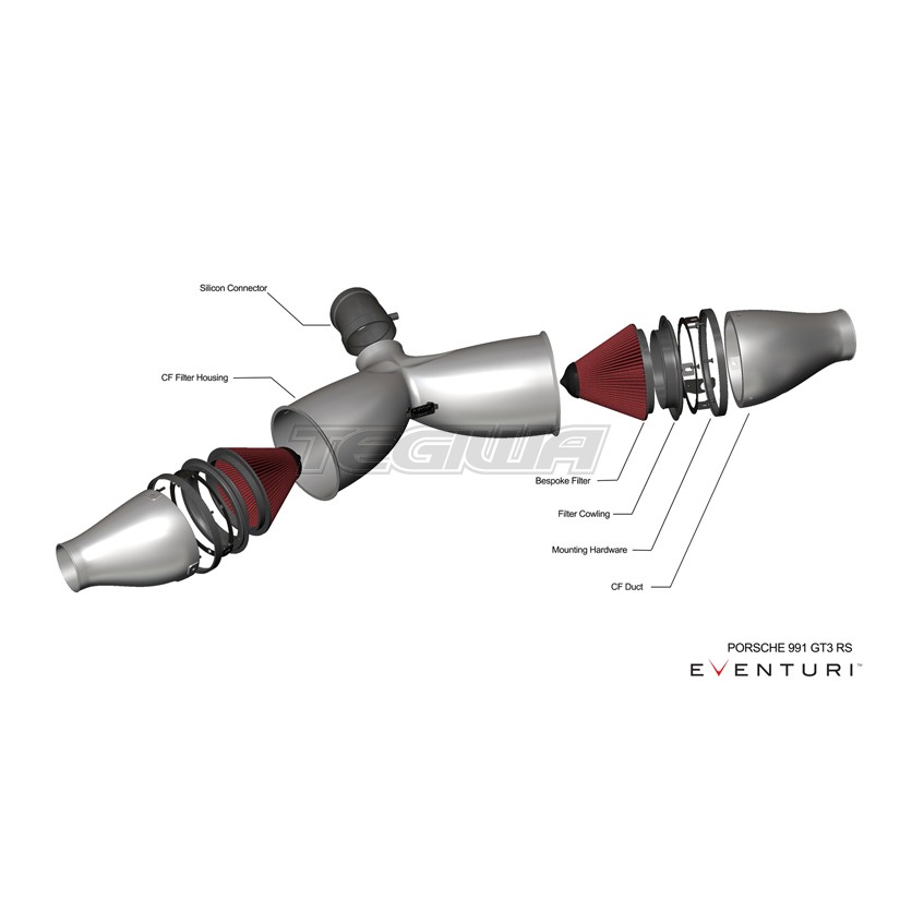 The 991 GT3 RS Eventuri system uses our Patented Carbon fiber Housings which provide an aerodynamically efficient airflow path from the filter to the engine. Not just another cone filter with a heat shield but a unique design which invokes the Venturi affect. You can read more about the housing design and how it works HERE