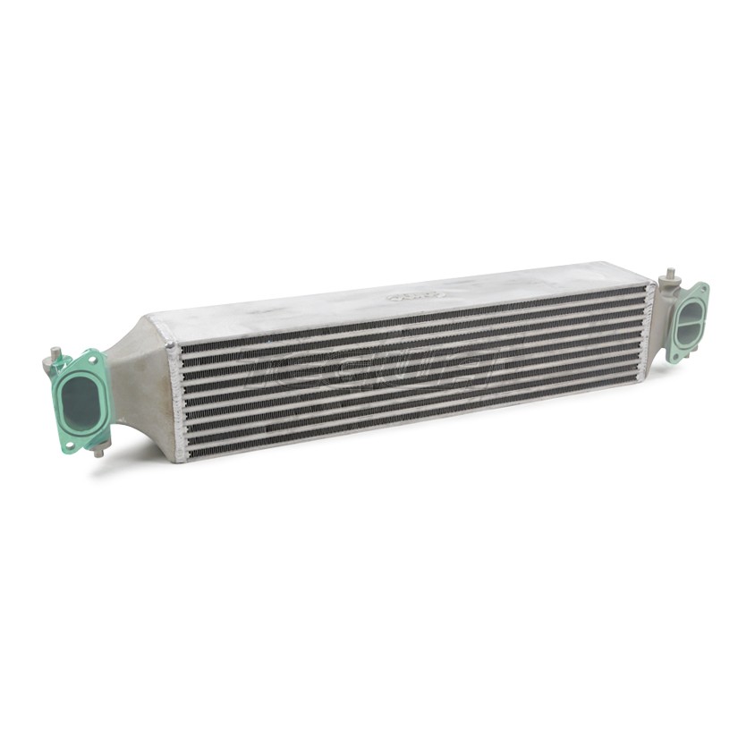 The bar and plate core has over 89% more volume and larger frontal area. To ensure the optimum airflow from the front of the vehicle onto the surface of the core this intercooler utilizes the OEM plastic ducting.
