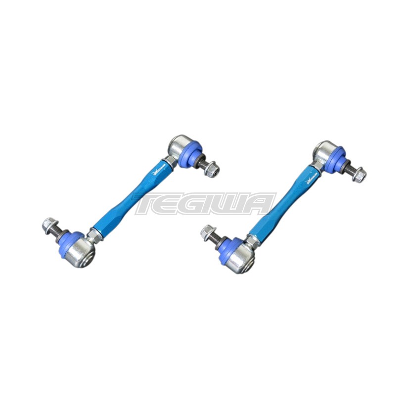The essential for getting connected! HARDRACE adjustable stabilizer links allow you to fine tune the position your sway bar for optimum handling. The adj. stabilizer link manufactured from high tensile steel with tight ball joints and rubber boots for superior strength and rigidity to extend its life. An absolute must for any lowered vehicle. . Adjustable sway bar end links . Self-lubricating plastic bearing and bracket . More direct energy transfer and feel . Improves handling performance . Perfect for lowered vehicles