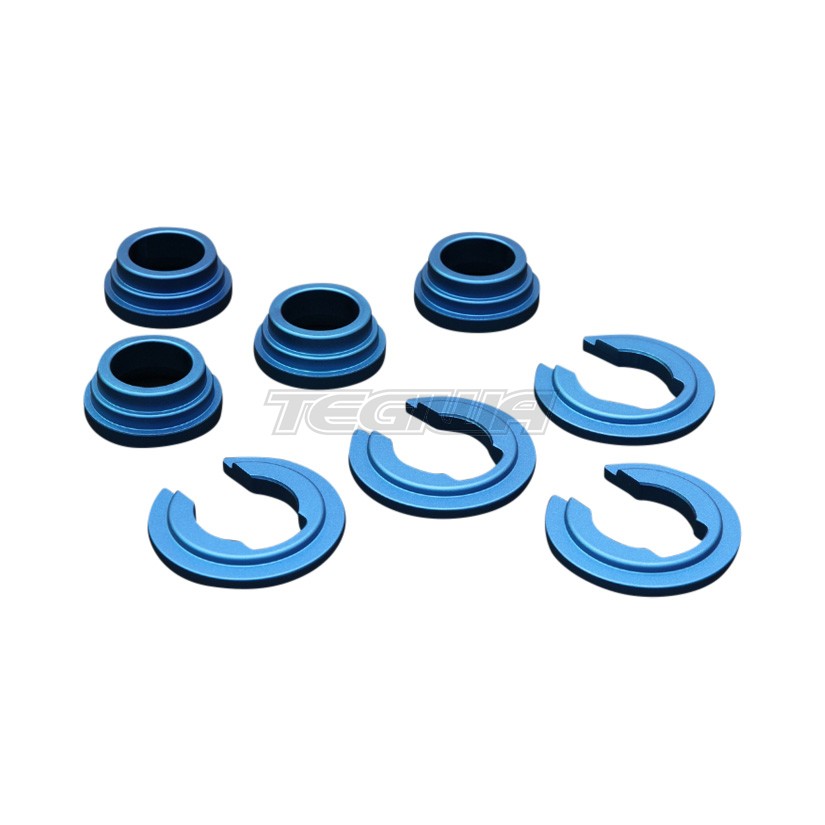 Subframe bushing collars made of high quality CNC machined aluminum. These 8 piece aluminum collars install above and below each of the four bushings and retain the stock anti-squat geometry. Brings better handling feeling and quicker response. Enhances drift initiations much easier and smoother