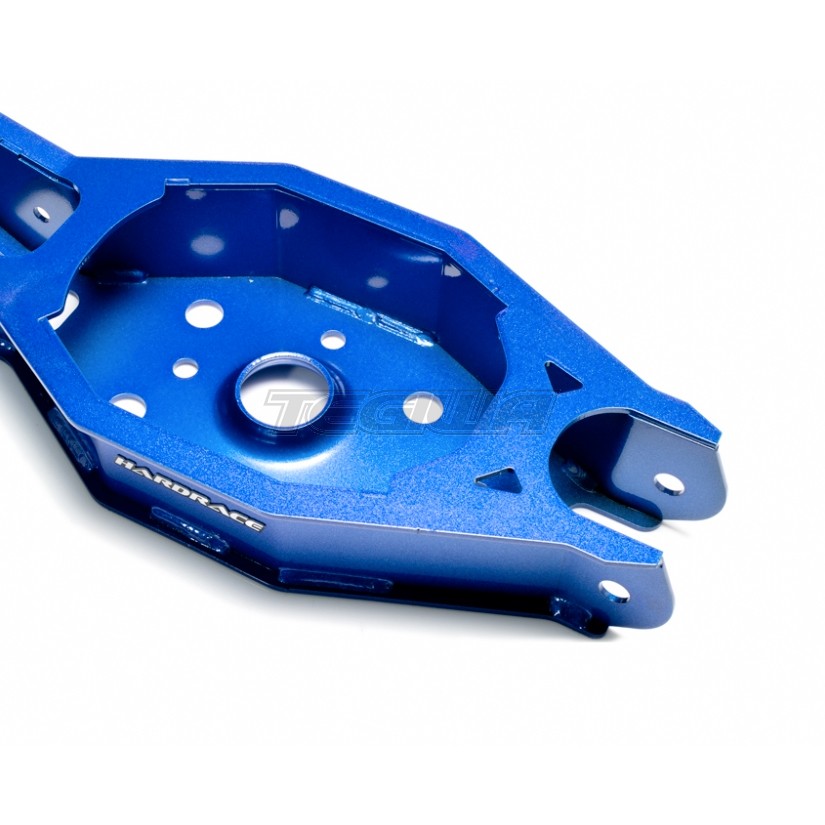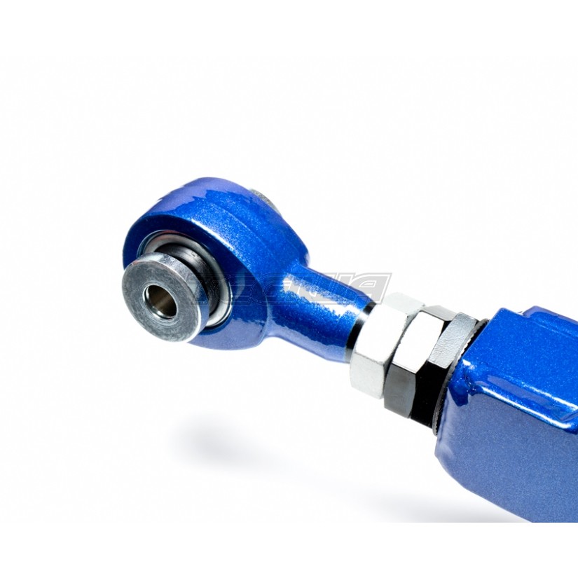 The rear lower arm allows fine adjustment to the rear end camber setting of the vehicle. It can either help maximize wheel contact patch to improve cornering grip or get your car back to original alignment specs after lowering to prevent uneven tyre wear. The arm features improved construction and materials made of boxed steel alloy to offer superior strength, durability over the factory stamped steel pieces. The equipped high quality pillow ball bushings also provide much more solid and precise handling response.