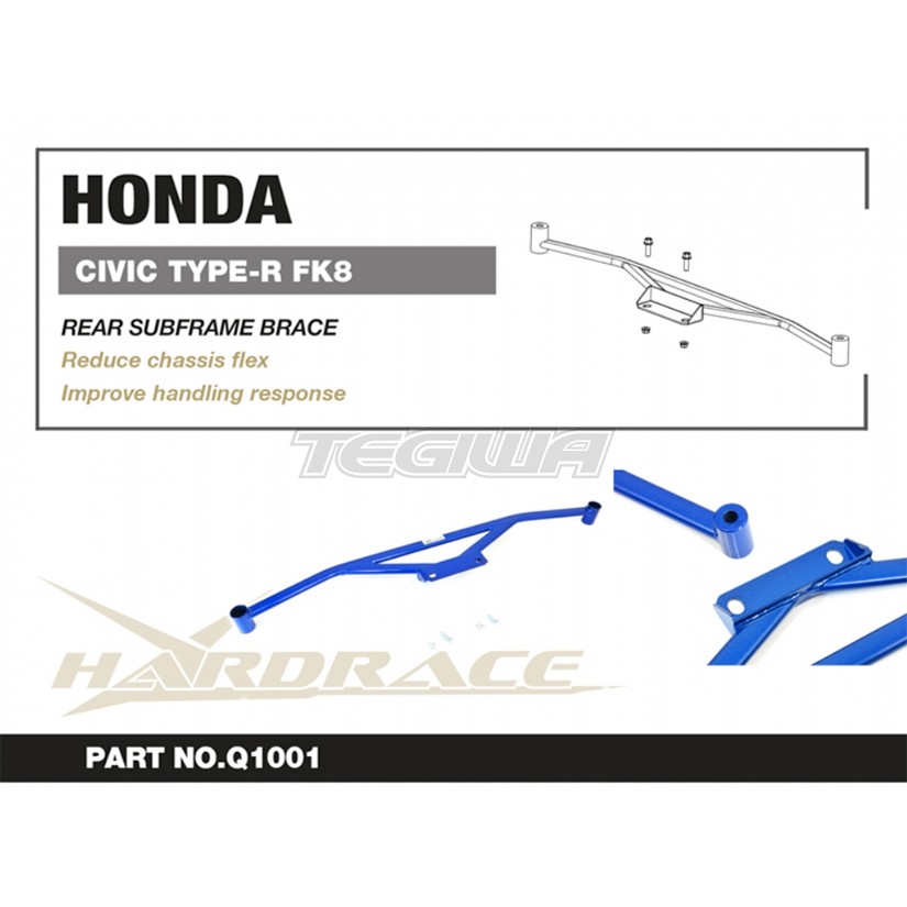 HARDRACE is proud to announce the new rear subframe brace for Civic Type-R. The brace will reduce vehicle chassis flex and deflection to increase the rigidity of your car under high speed driving and hard cornering, resulting in better and quicker handling response.