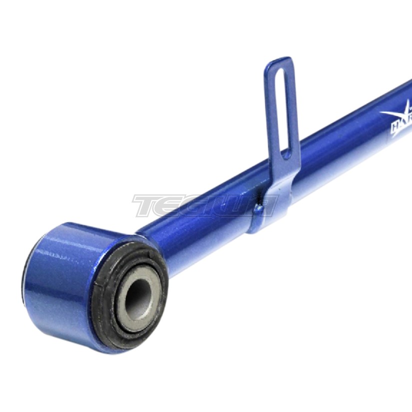 Toe arms allow for fine-tuned adjustments to the rear toe in/out setting of the vehicle. It helps to raise straight line stability and road control. Toe arm made with high-strength steel alloys to offer high durability, strength and yet remain light-weight.