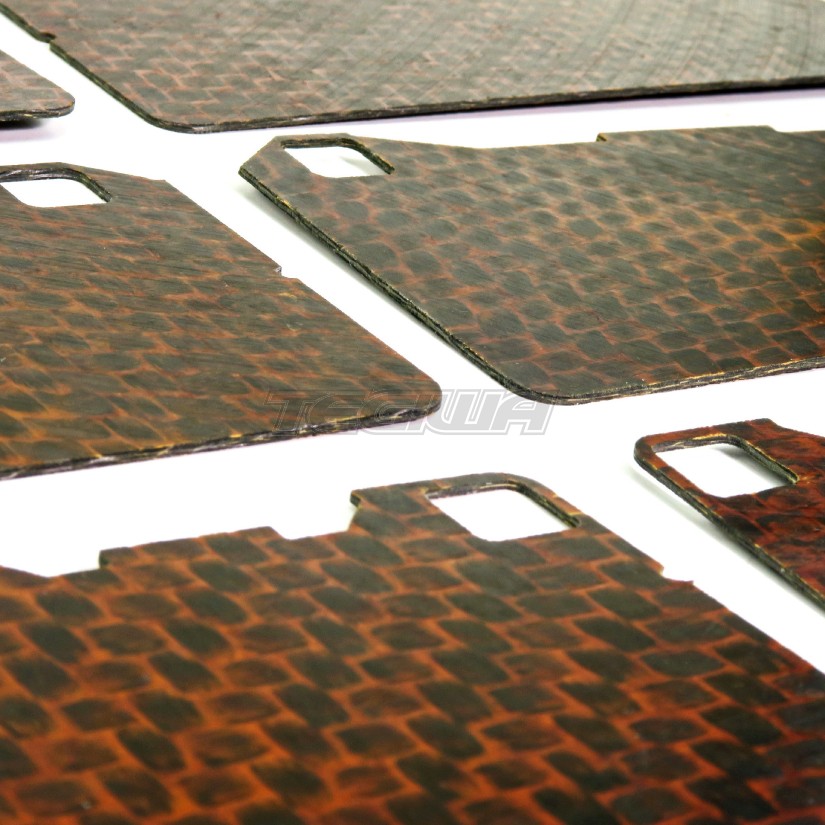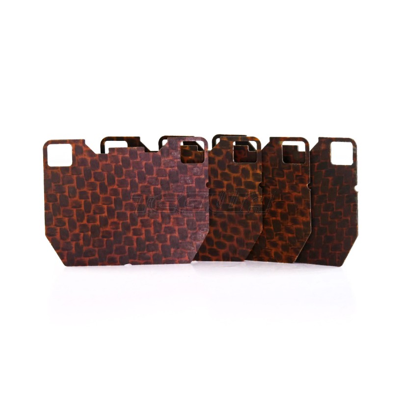 HEL Performance have pulled out all the stops when developing their carbon fibre brake pad shims. They've used the finest carbon fibre, combined with an exclusive resin which is non-combustible and thermally resistant to temperatures over 400°C (752°F). This special resin cures an attractive deep orange against the black fibres.