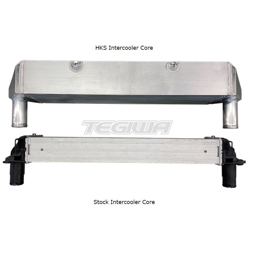 - HKS intercooler core size is 645x205x105 (stock is 645x145x80). Made in Japan"", laminated type core is used for reliability and performance.