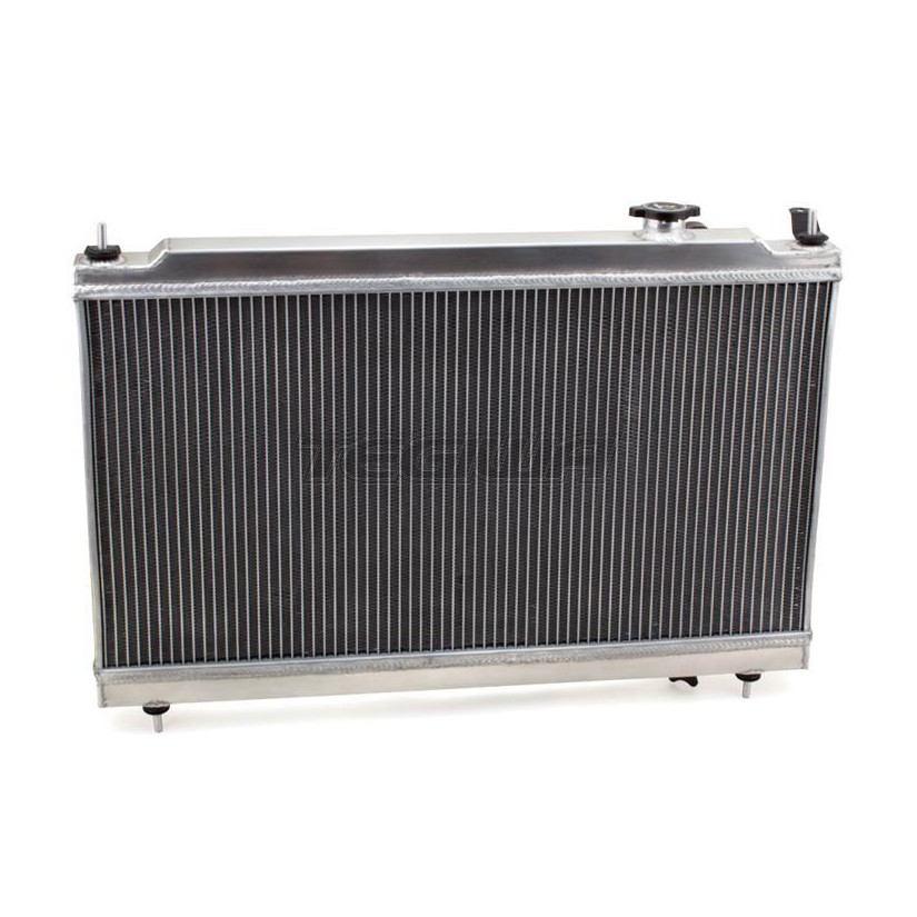 This question has several answers. First, this Hybrid Racing full-size K-Swap radiator features all aluminum, and fully tig welded construction. As a result, it's less likely to leak or crack like the OEM unit which uses an aluminum core and plastic end tanks. Second, the coolant ports on all Hybrid Racing K swap radiators are relocated to allow the use of shorter coolant hoses when used in conjunction with a K series motor.