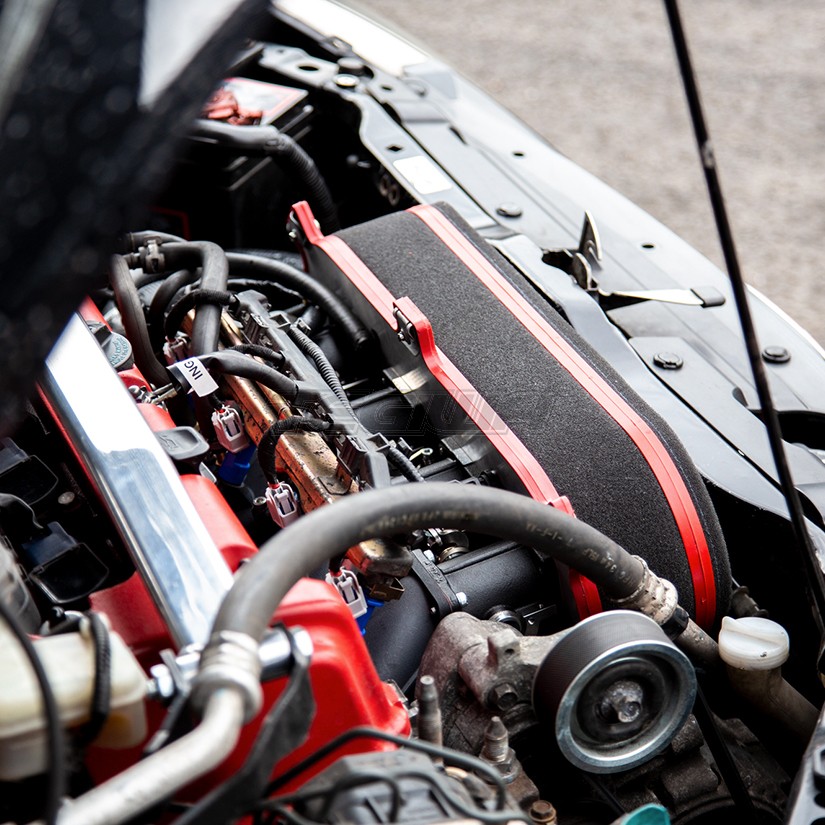 There are no modifications required to any of the pipes, pulleys, or the fuel rail in order to fit them. Requires a genuine Honda TPS with the polarity reversed, will not work with a hall effect TPS. The manifold itself is curved in order to clear the auxiliary pulley. The kit is finished off with an ITG foam filter that fits snuggly in the engine bay, maximising all possible space. The kit retains the use of the standard fuel rail, idle control valve, throttle position sensor, map sensor, canister purge valve and includes fittings for the PCV, brake boost and oil breathers.