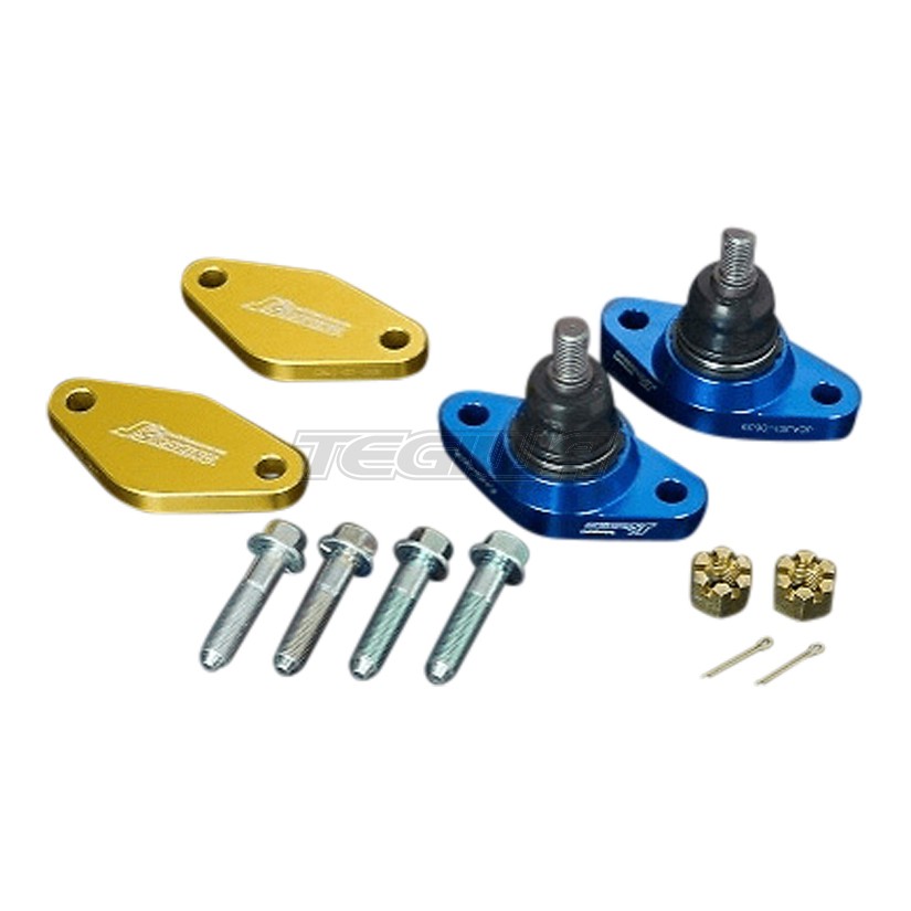 Forged aluminium construction with J's racing stamp. Includes camber plate, special bolts, nuts and clips. The more expensive L1/L2 models also include roll center adjuster plate. A concern of the S2000 setting is a limited adjustable range of the front camber. J?s Racing camber joint provides extra degree of negative camber by de-centering the lower ball point. L1 and L2 have a roll center adjustment function to correct the front roll center position for S2000 whose height has been reduced more than 40mm. L1 and L2 come with an adjustment plate. By removing the adjustment plate, L1 and L2 can be used as S1 and S2 for a S2000 with the ride height up to 40mm down.