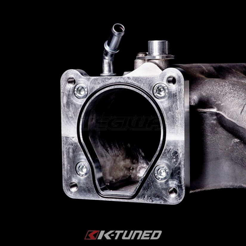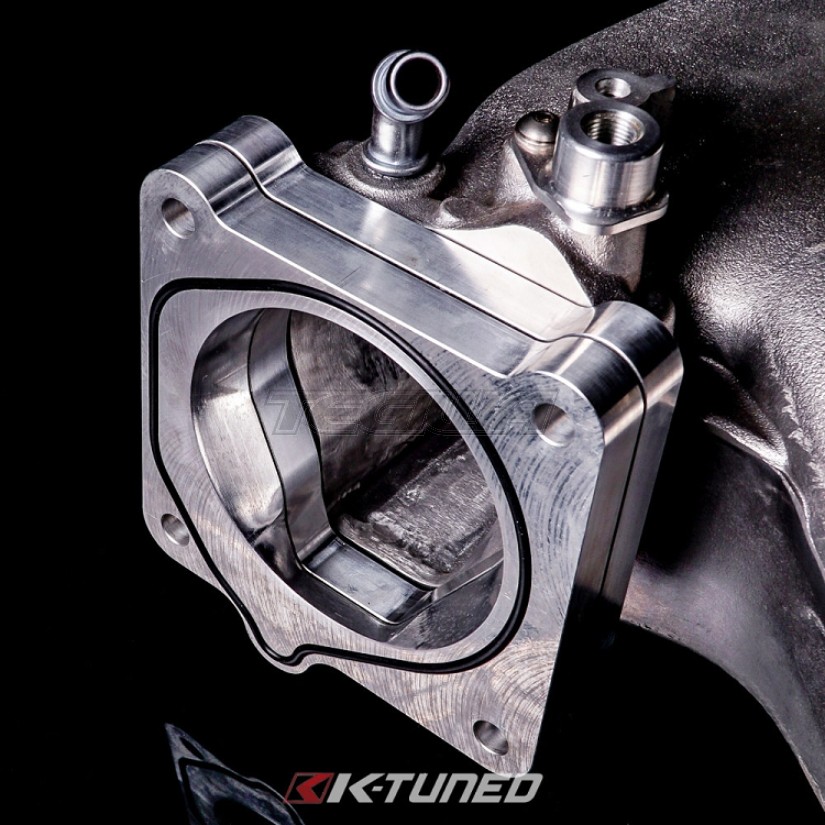The K-Tuned 80mm K-Series Throttle Body features the largest bore of any aftermarket K-Series throttle body on the market. By using a specialized set of billet adapters we have made it possible to port out the TB opening and the IACV (Idle Air Control Valve) section on either the RBC, PRB, PRC, or Skunk2 Pro-Series intake manifold. This porting increases the size of the intake manifold opening and allows an 80mm TB to breathe perfectly through the off-round hole. Don't jump to any conclusions because we have successfully re-routed the IACV ports on the TB itself, in order to keep it fully functional if desired. For setups where an IACV delete is preferred we also include 2 x 1/8 NPT plugs. The TB kit comes with a standard 80mm (3.5") hose barb inlet, but optional V-band or Vanjen (Wiggins style) inlets are also available separately in 80mm (3.5") sizes. These interchangeable inlets bolt on easily and eliminate the need for any welding.