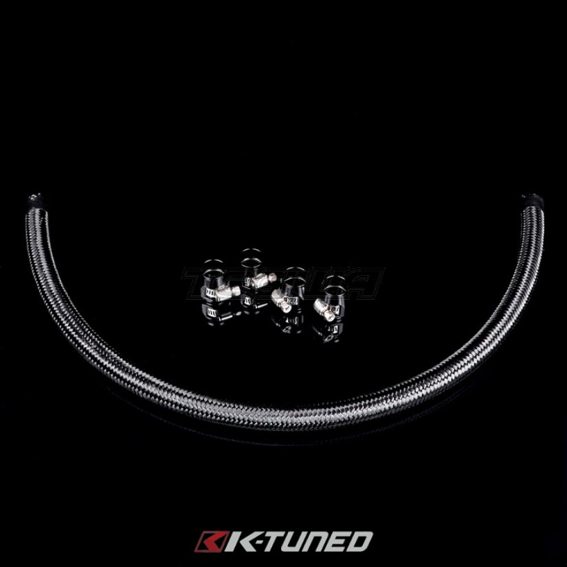 Replace the ugly rubber brake booster hose on your K-swap with our 8AN black braided line. This line not only looks great, but fits perfectly over your brake booster port, check valve and intake manifold port. This is the same type of braided hose that we use on our 6AN fuel line kits so it will give the engine bay a nice uniform look. The kit includes 4 feet of 8AN line and 4 black hose end covers with integrated clamp.