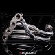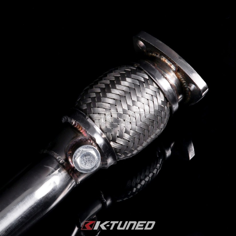 The popular K-Tuned 4-2-1 Swap Header for K-series engine swaps is back again with some improvements. This header is capable of making very good power on relatively stock or mild engine setups. The main focus while designing our K-Tuned Swap Header was to blend excellent fitment, high quality construction and keep the price reasonable. We have upsized the primary piping slightly and improved the quality of all transitions to improve exhaust flow. The primary to secondary transition now uses an expanded secondary pipe at the joint to eliminate any restriction. The secondary pipes have also been changed a little and now merge together better at the collector. The header is constructed with 100% stainless steel with 3/8' thick flanges that are double welded and then ported for optimum flow. The piping is extra thick for added strength and to allow better weld penetration. These strength features add longevity and make a header that will be able to take the abuse of a firmly mounted K-swap engine. The strong interlocking flex-pipe can handle a lot of heat and has a 2.5' ID (Inside diameter). It flows very well and absorbs engine movement. Like our other headers, they are designed to fit most K-swap chassis perfectly. The header does not interfere with shifter mounting kits and is well centered in the exhaust tunnel. The 3-bolt exit flange prevents leaks and allows for installation to the existing exhaust piping with minimal modification. Please note that all of our headers will require some exhaust welding for installation.