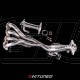 The header features stepped piping beginning with 44mm primaries that progressively move into 48mm, then 50mm secondaries and finally a 64mm or 2.5" exit. Like all our stainless headers, it is assembled with mandrel bent, 304 stainless steel tubing and is fully tig welded. We also use a slightly thicker gauge tubing that allows for better weld penetration and additional strength. The CNC cut 3/8" thick flanges are also double welded and then ported for optimum flow at entry and exit. This header directly replaces the OEM 2 piece design and eliminates the catalytic converter so we included a short 2.5" test-pipe with defouler for the secondary O2 sensor. Be sure to check out our 3" Oval Tube Exhaust System for the RSX if you haven't seen it already.