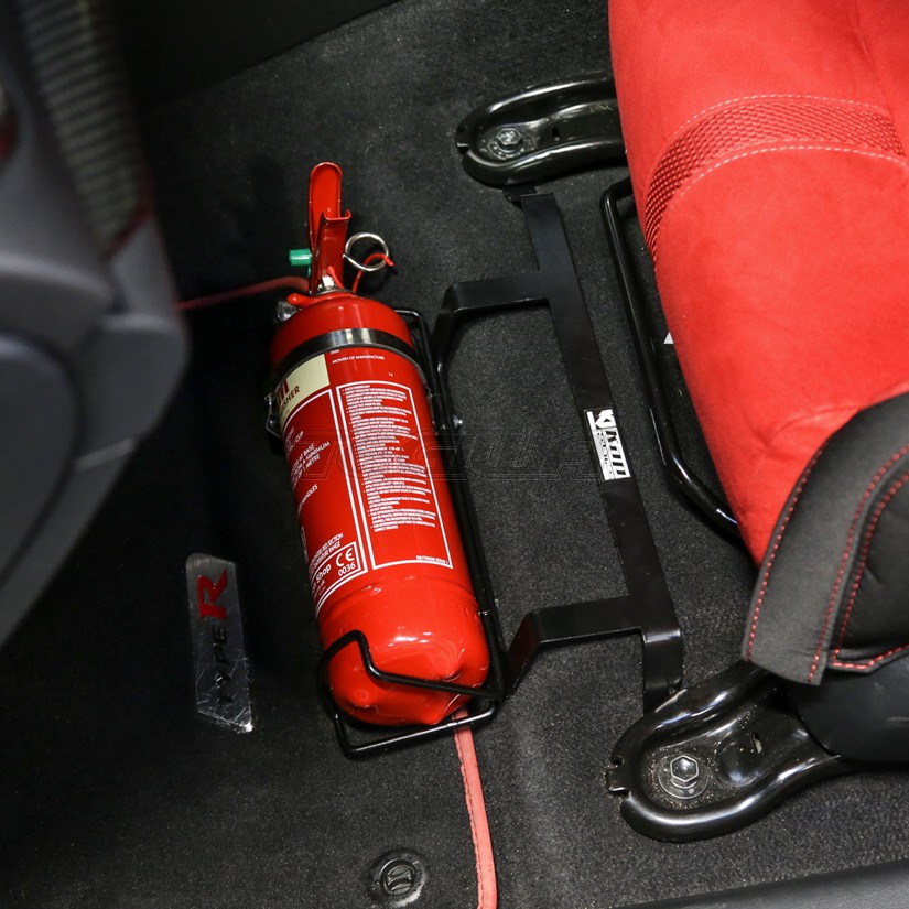 These brackets are super simple to fit requiring no drilling or cutting; simply unbolt the front mounts of your passenger seat, slip the bracket in-between the seat and the holes, then bolt the seat back down. Included with these are all the hardware required to fit an extinguisher.
